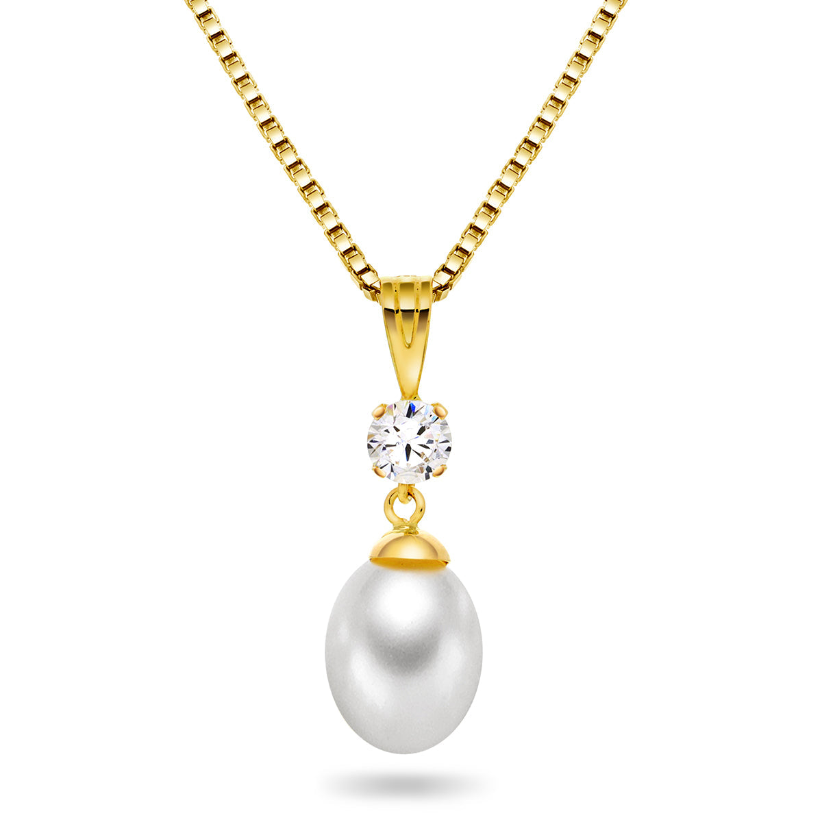 • Diamant hals smykke med perle i hvitt gull, 0.08CT TWSI - Diamanthuset
