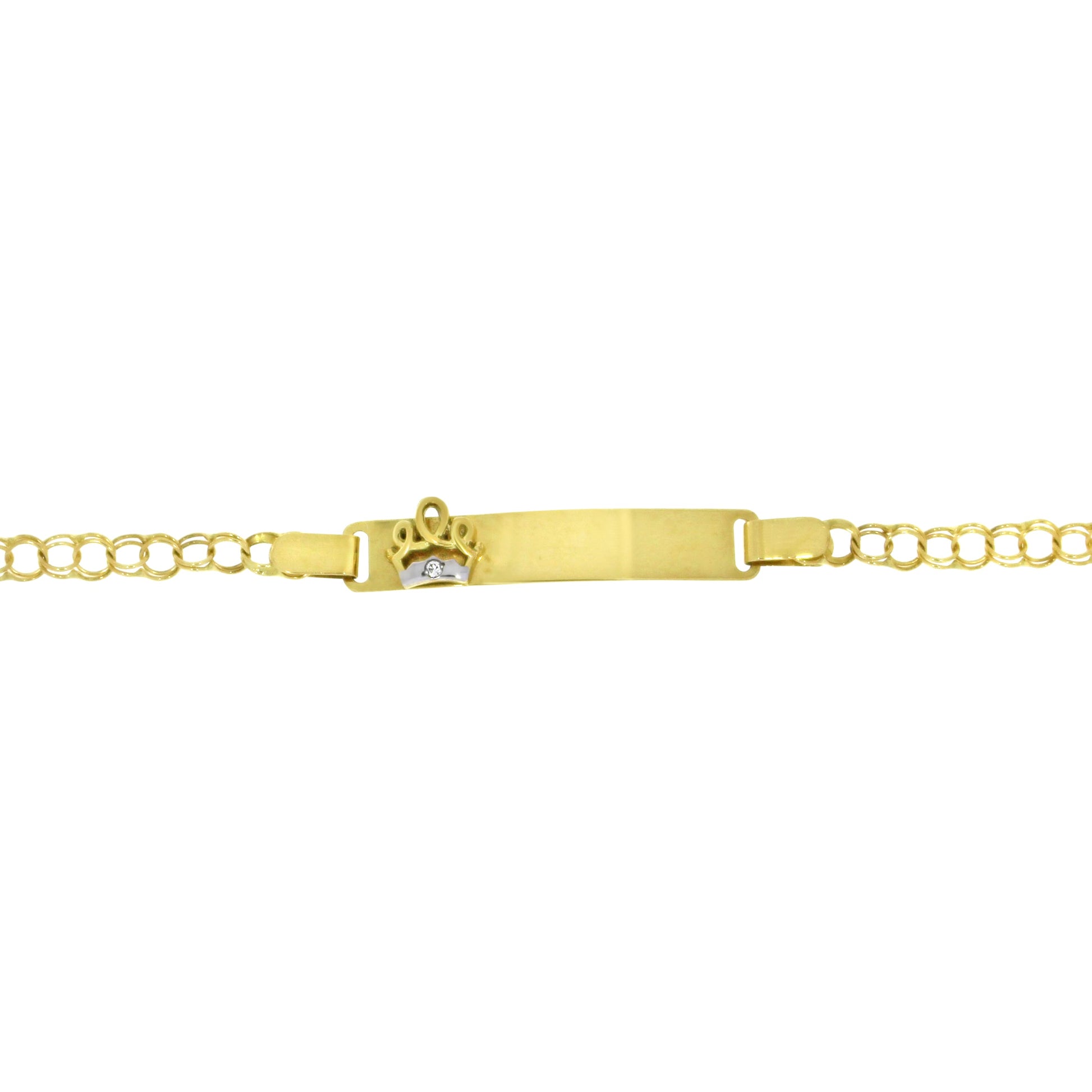 Flott 14k (585) armbånd i gult gull og emalje, med kronemotiv. Dette passer perfekt til barn, og som gave til dåp eller navnedag.