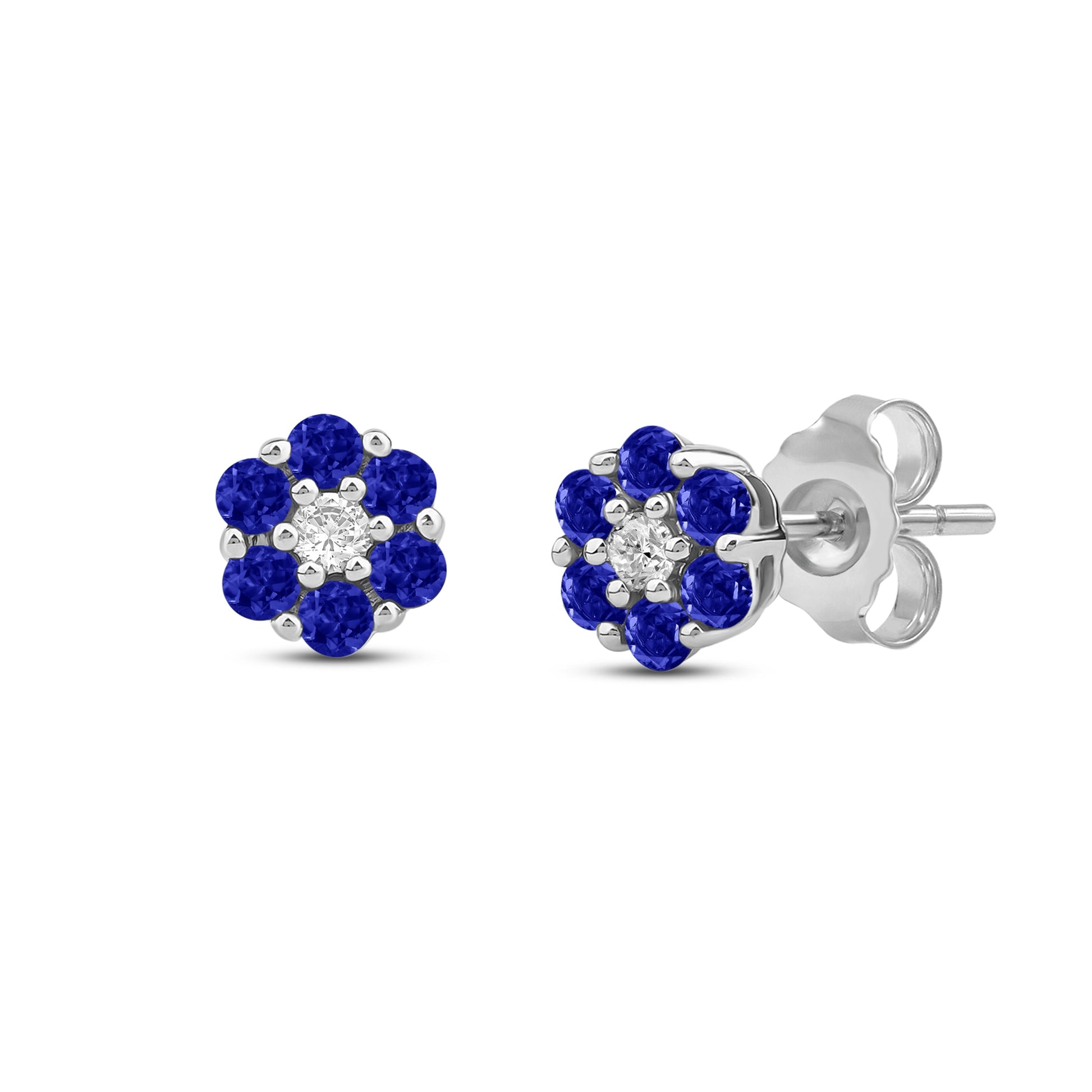 Disse elegante øredobbene i 14 kt hvitt eller gult gull har en total diamantvekt på 0.05 ct, omkranset av 0.40 ct glitrende safirer. Designet har et delikat blomstermønster som gir et sofistikert og tidløst preg. Perfekte for å tilføre et snev av fargerik eleganse til enhver anledning.