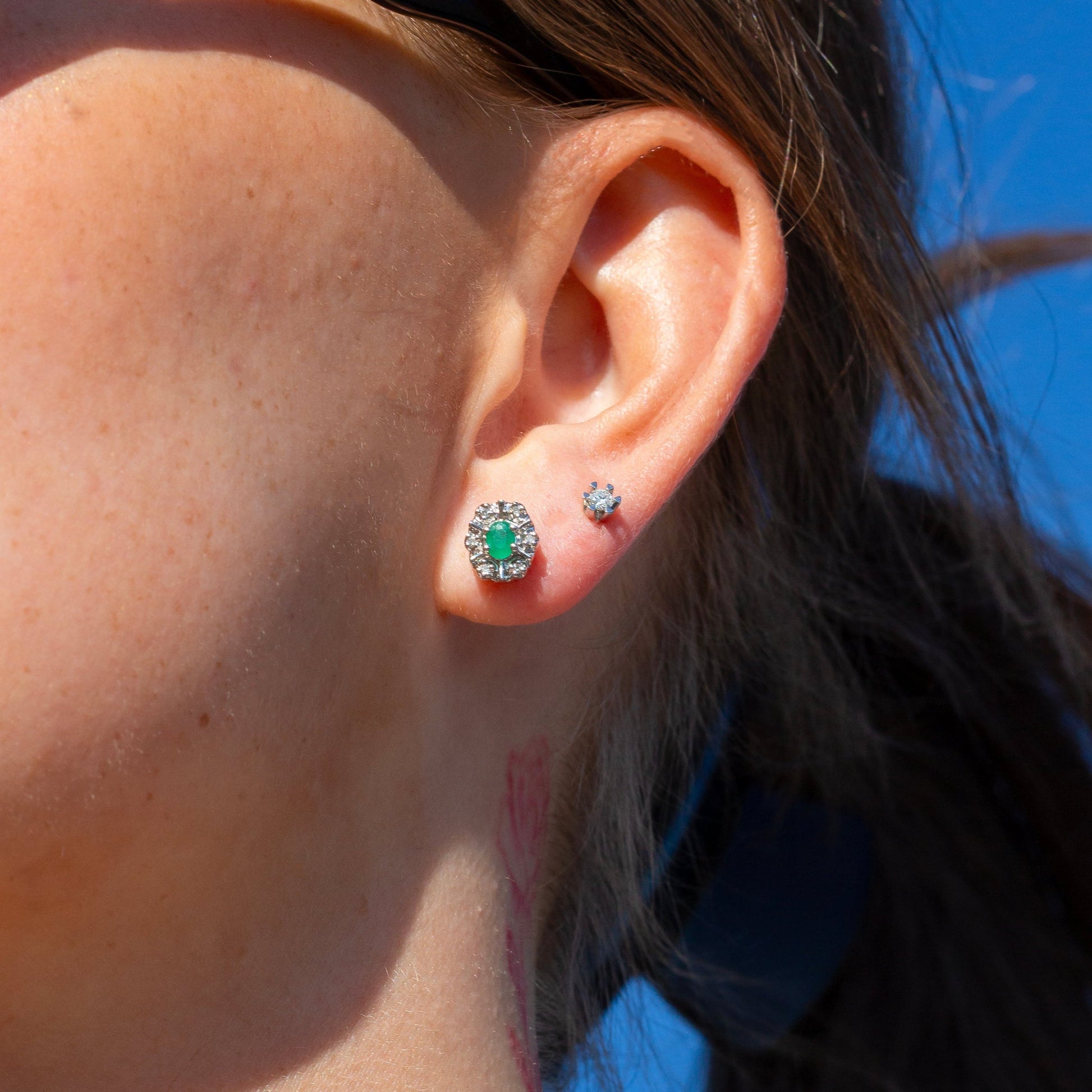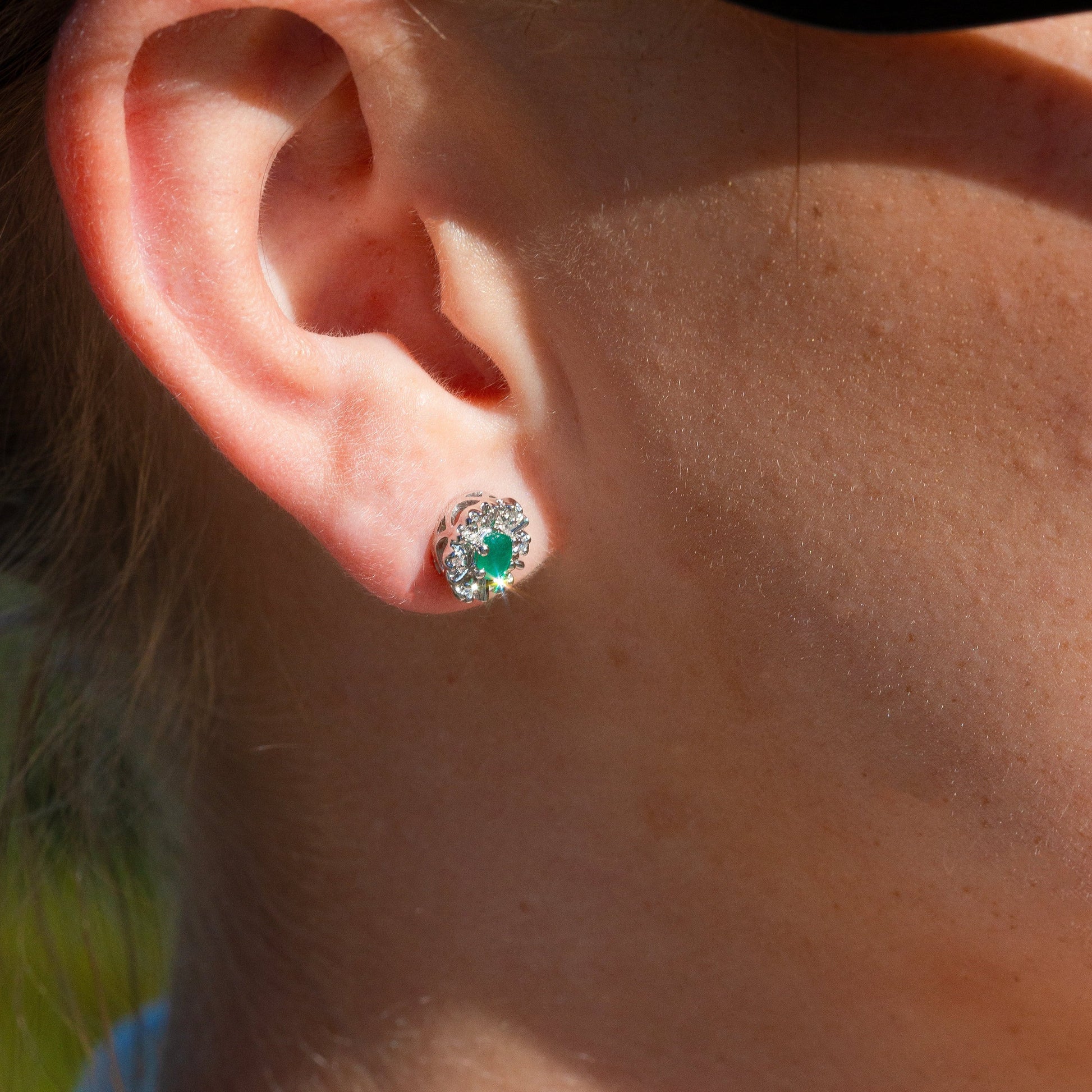 Nydelig smaragd ørepynt. Størrelse 8 x 7 mm Carat: 0,06ct Color