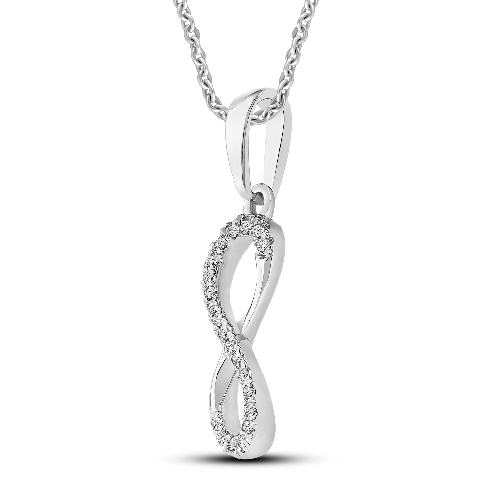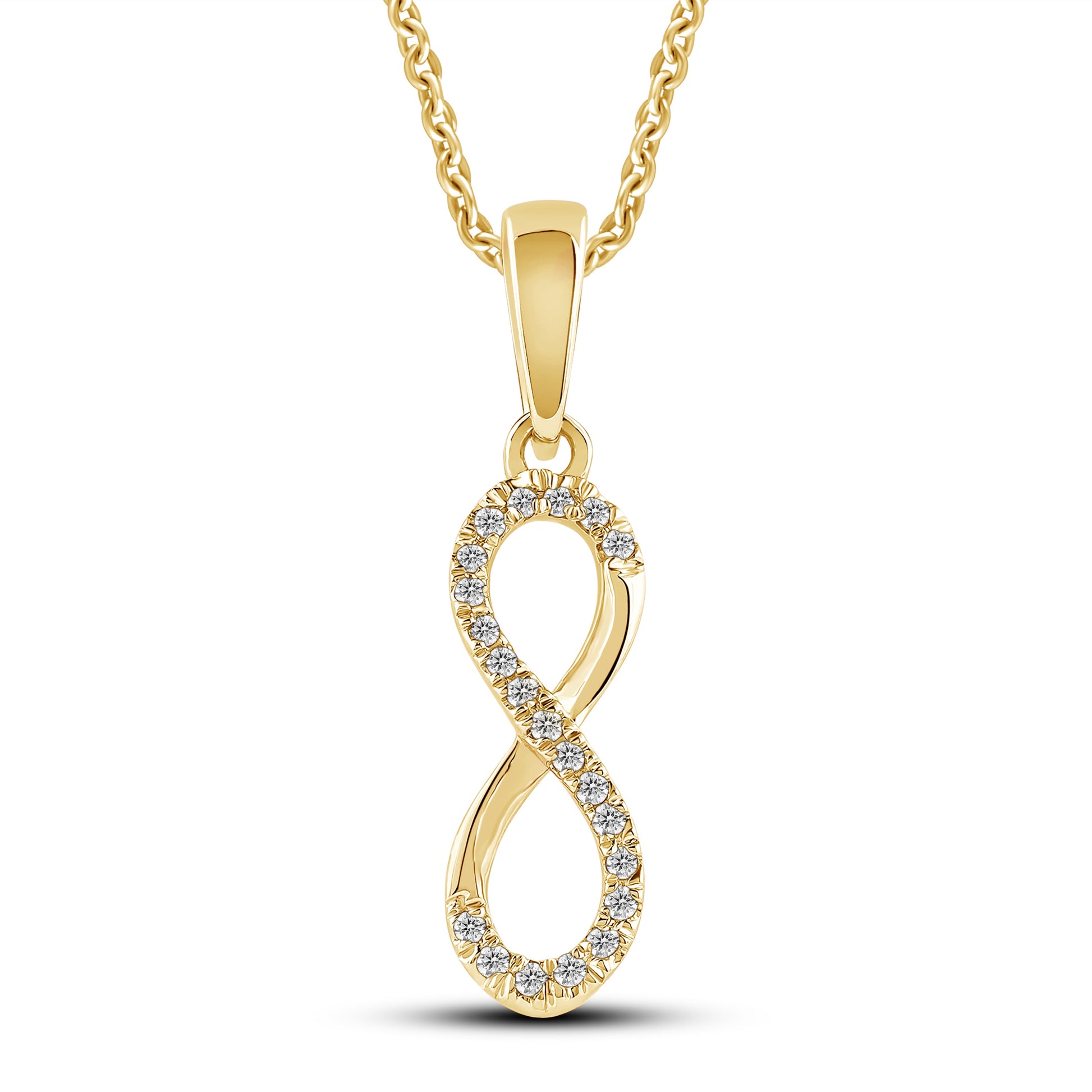 Elegant anheng i 14 karat gult eller hvitt gull med en tidløs evighetssymbol-form, prydet med totalt 0.08 ct glitrende diamanter. Den myke kurvaturen og det åpne designet gir smykket et lett og moderne uttrykk, samtidig som diamantenes skinn tilfører klassisk luksus.