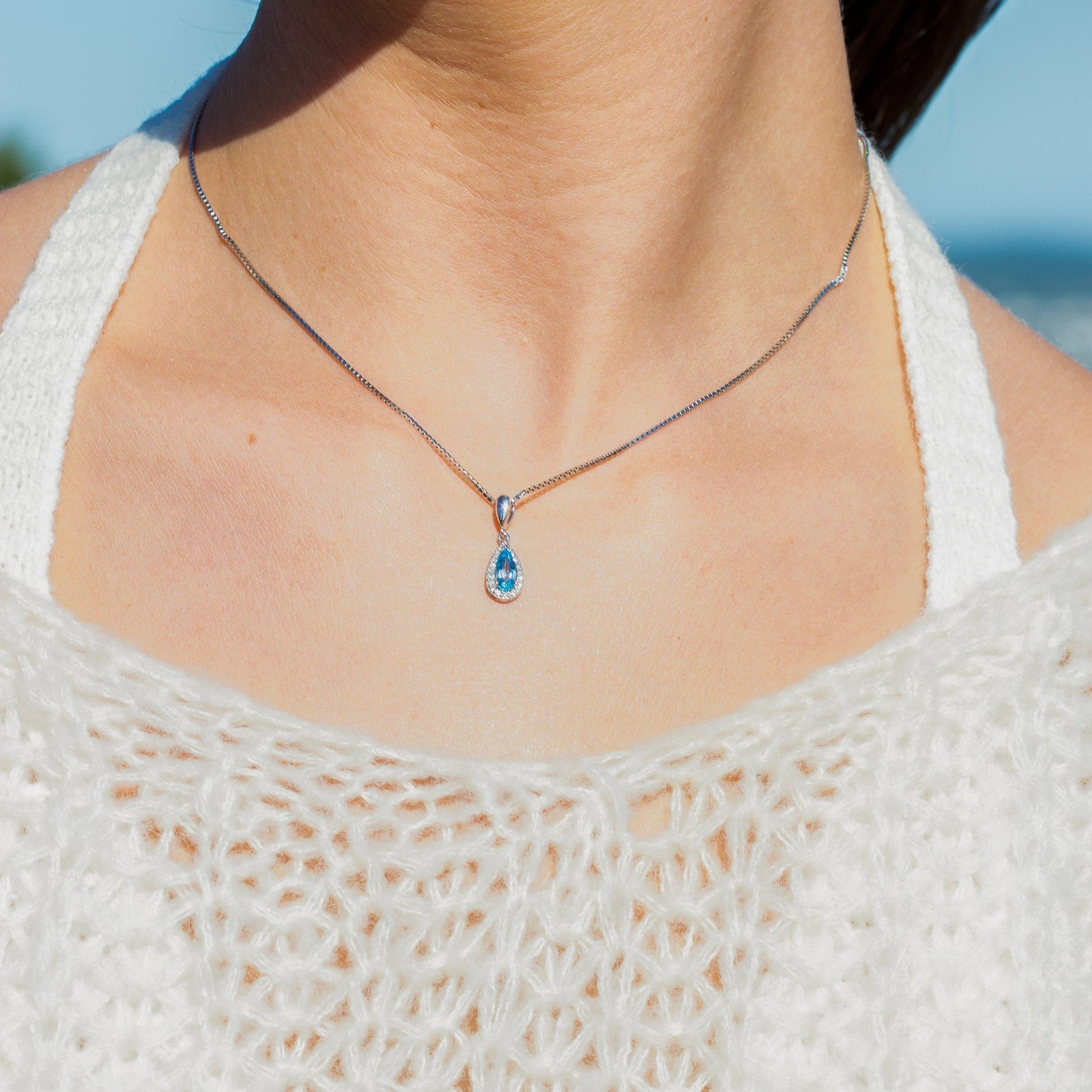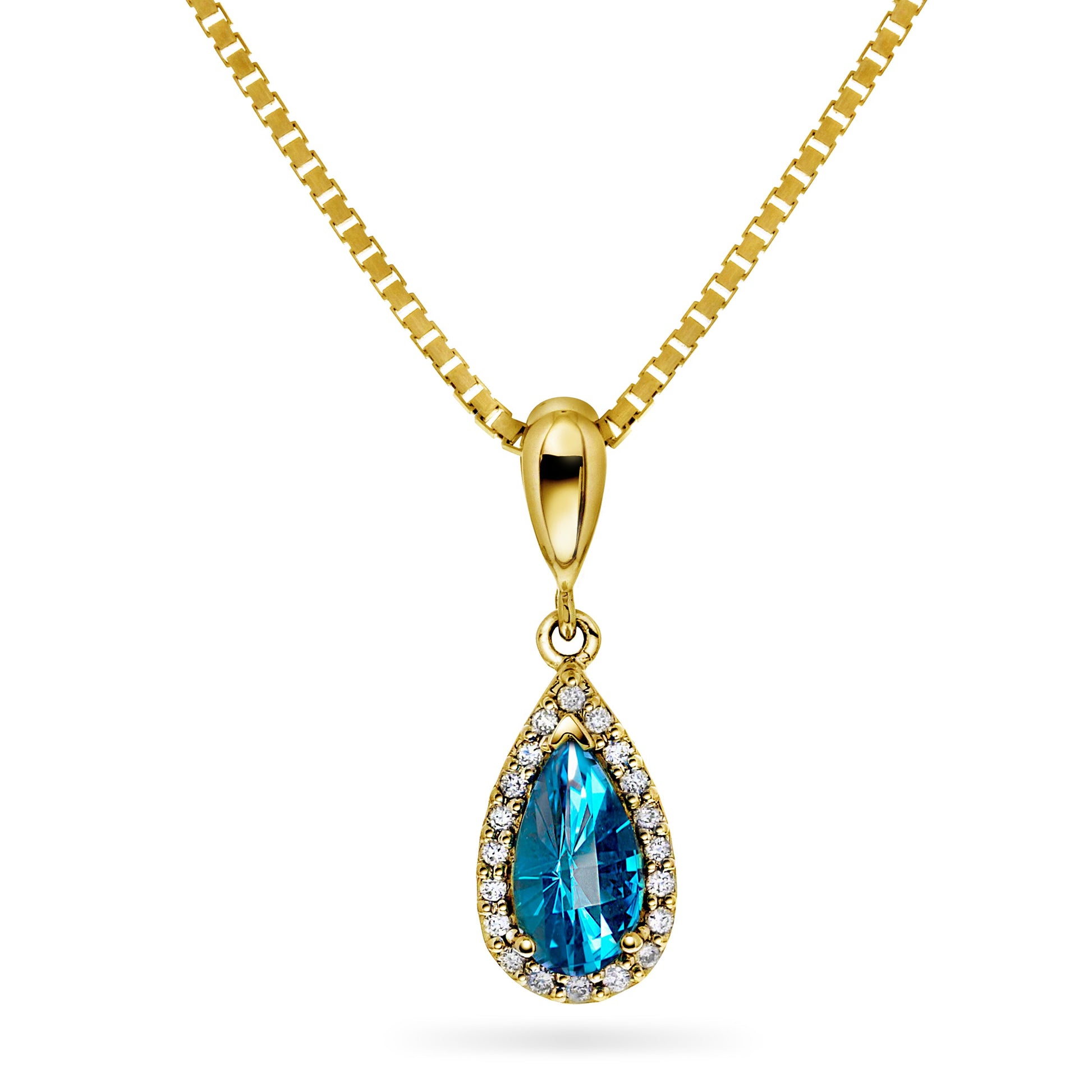 Luksuriøst halssmykke i 14 karat gult eller hvitt gull med dråpeformet topas og 0.10 ct TW/SI diamanter