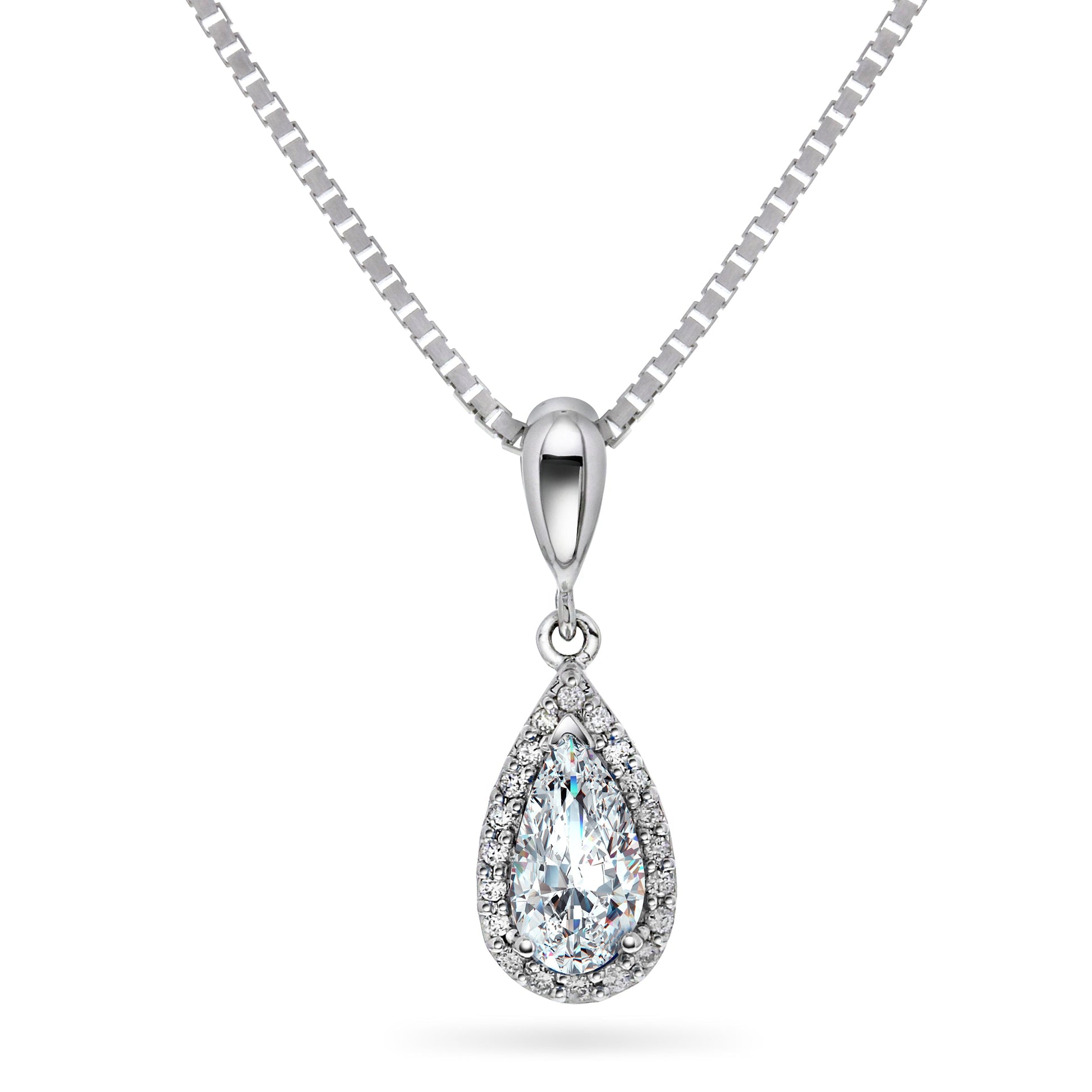 Strålende halssmykke i 14 karat hvitt gull med dråpeformet aquamarine og 0.10 ct TW/SI diamanter