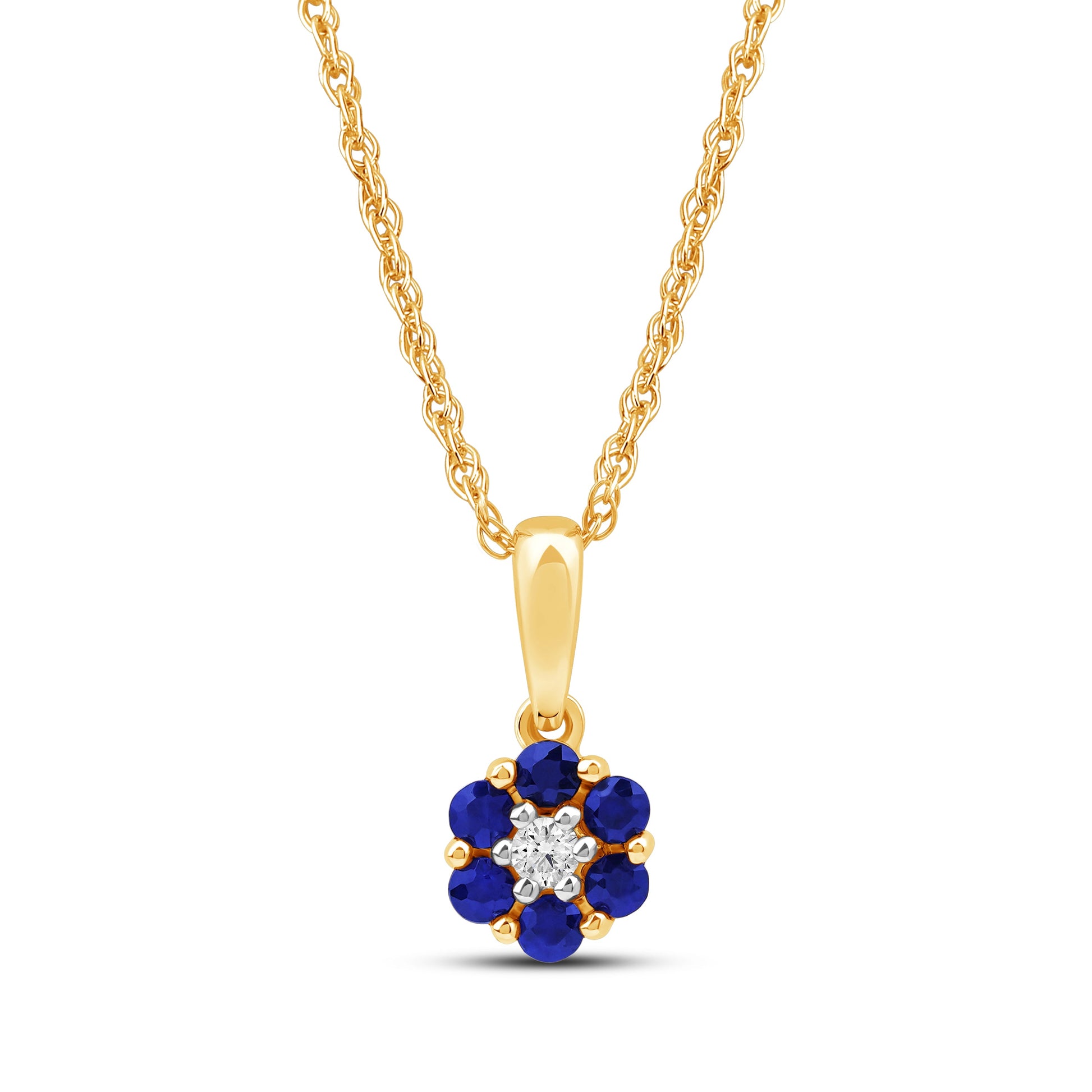 Diamanthalssmykke i hvitt og gult gull, 0.03ct TW/Si og 0.19ct safir