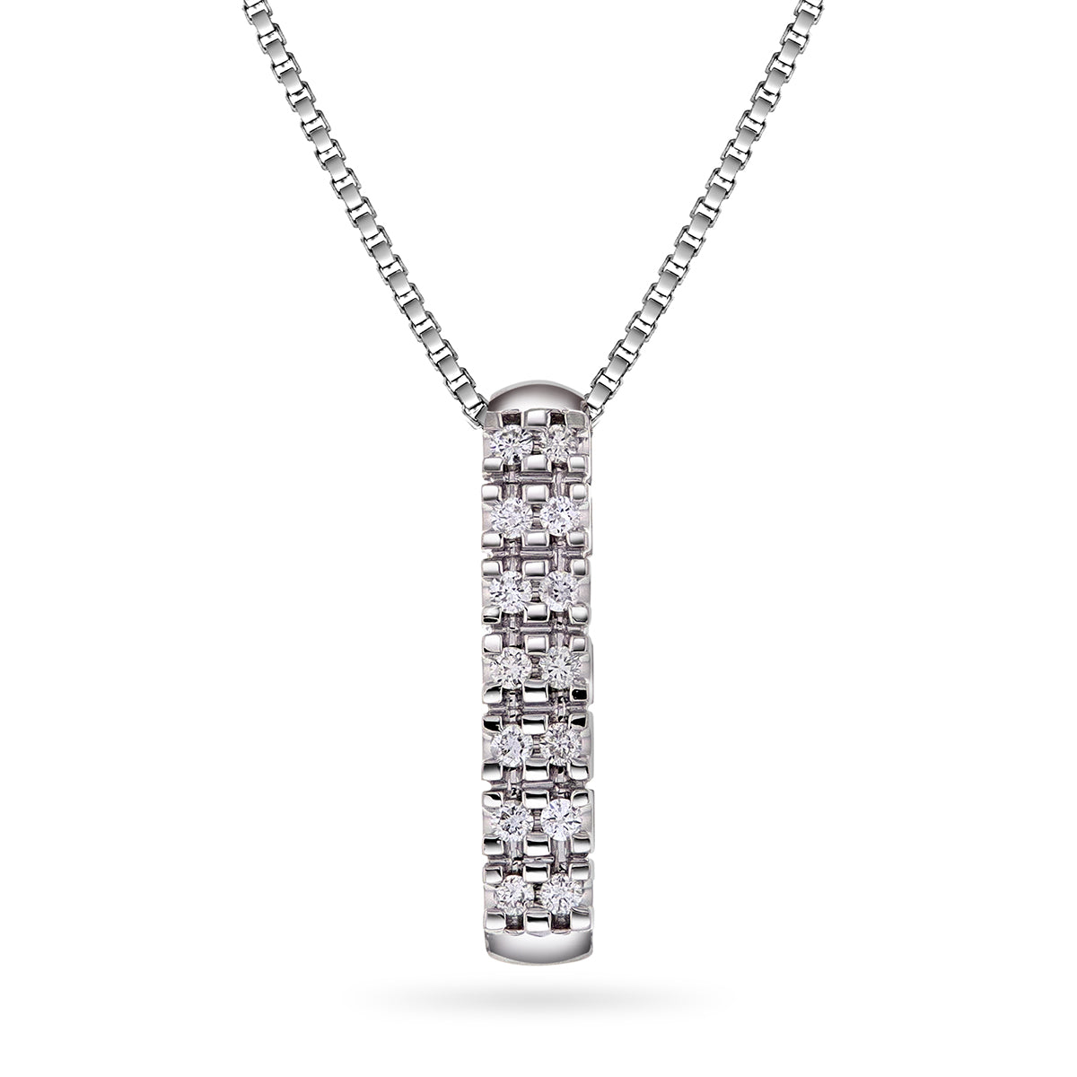 Tidløst smykke i 14 karat hvitt gull med et elegant rektangulært anheng, vakkert dekorert med glitrende diamanter. De nøye plasserte diamantene gir smykket et moderne og luksuriøst uttrykk som passer perfekt både til hverdag og fest. Et design som kombinerer rene linjer med strålende detaljer for et sofistikert preg. Smykket er også tilgjengelig i klassisk gult gull.
