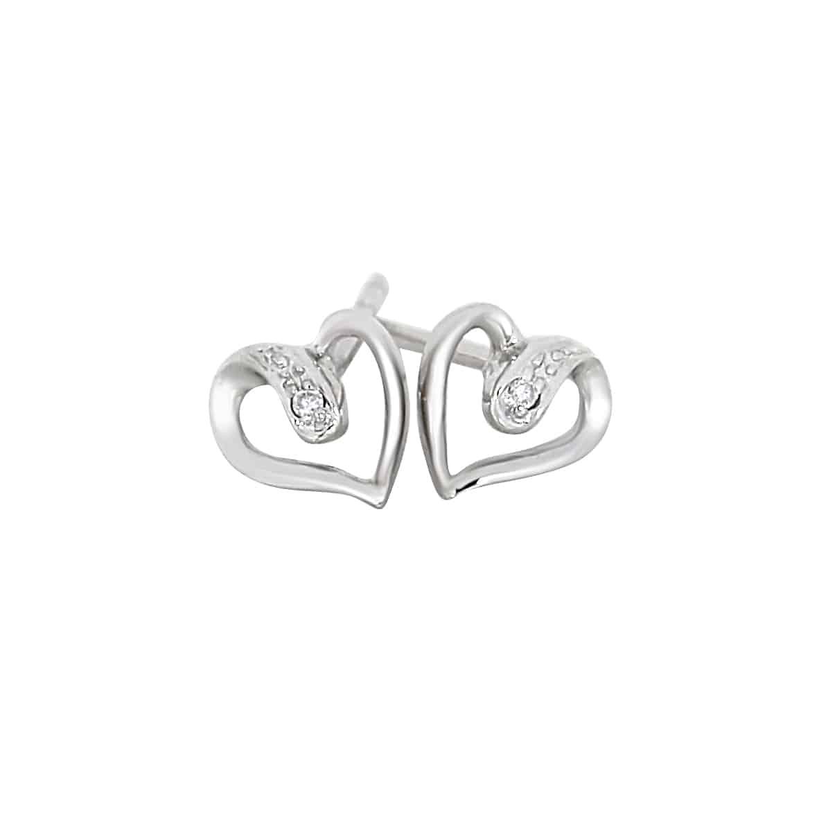Vakre øredobber i gult eller hvitt gull formet som et hjerte, med 0,01ct TWSI diamant.