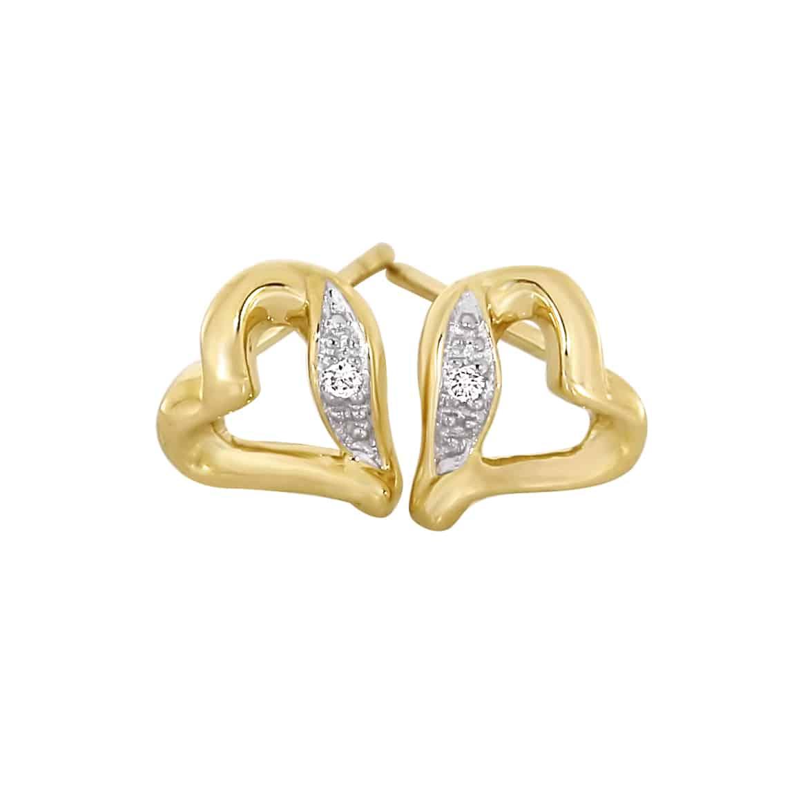Vakre øredobber i hvitt eller gult gull formet som et hjerte, med 0,02ct TWSI diamant.