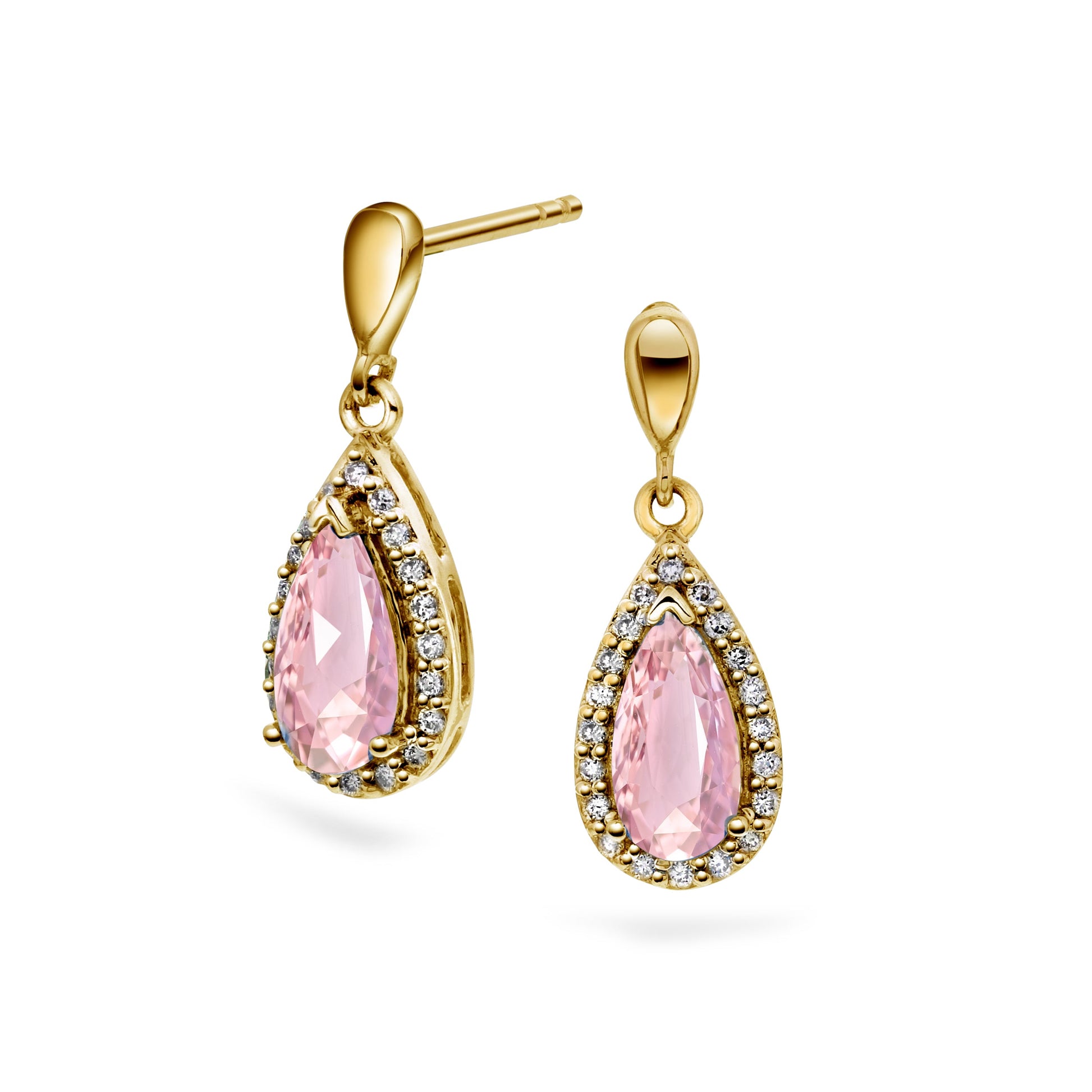 Myk og glitrende ørepynt i 14 karat gult gull med rosekvarts og 0.20 ct TW/SI diamanter. Den lyse rosatonen harmonerer med gull og briljanter i et uttrykk som er både diskret og luksuriøst. Den dråpeformede innfatningen tilfører bevegelse og eleganse.