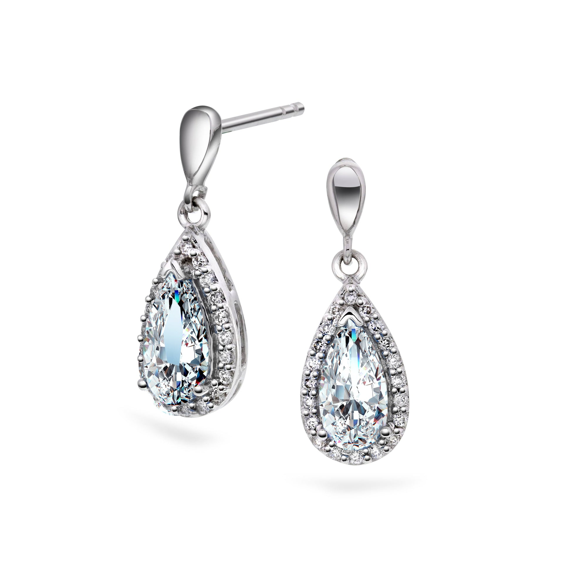 Strålende ørepynt i 14 karat hvitt gull med lyseblå akvamarin, elegant innrammet av 0.20 ct TW/SI diamanter. Edelstenen reflekterer lyset med klarhet og dybde, og samspillet med diamantene gir et krystallrent uttrykk. Den dråpeformede formen gir et klassisk preg med moderne letthet.