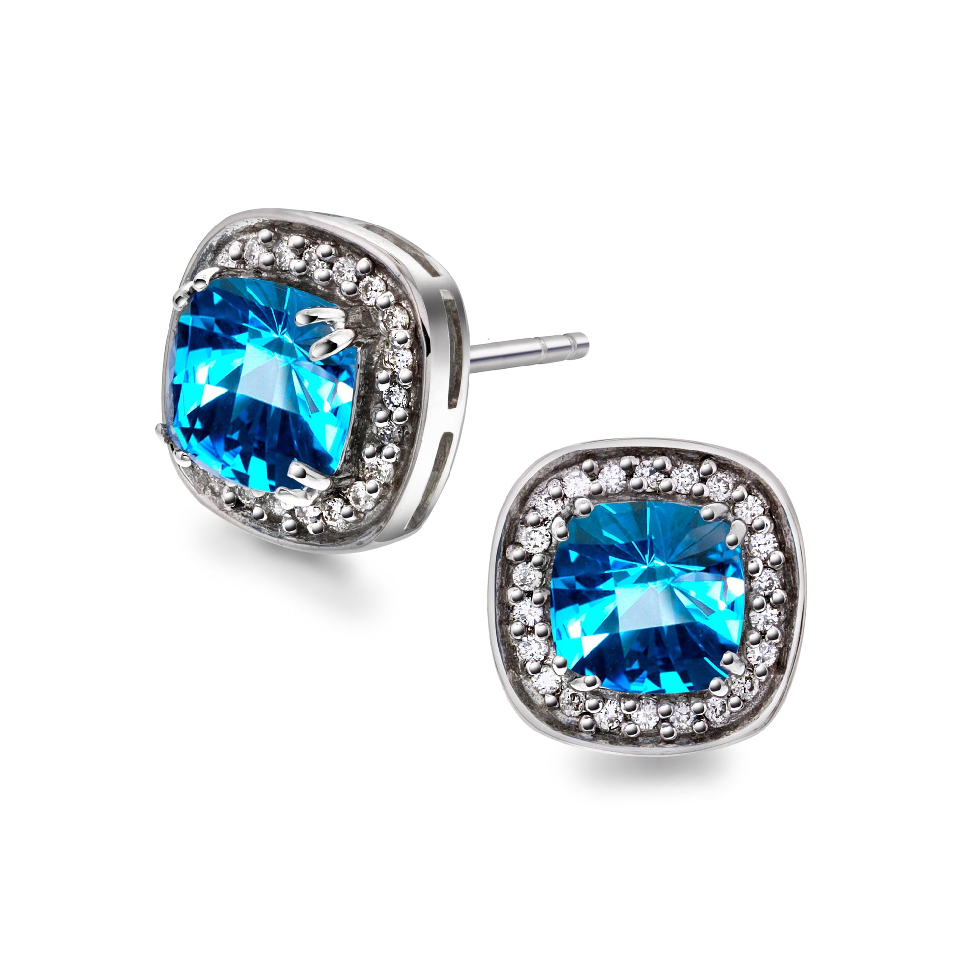 Elegant diamantørepynt i 14 karat hvitt gull med lyseblå topas på 2.00 ct og 0.20 ct TW/SI diamanter. Den puteformede stenen fremheves av briljantenes glans og gir et krystallklart uttrykk mot det kjølige hvite gullet. Designet kombinerer volum, letthet og presisjon i perfekt harmoni.