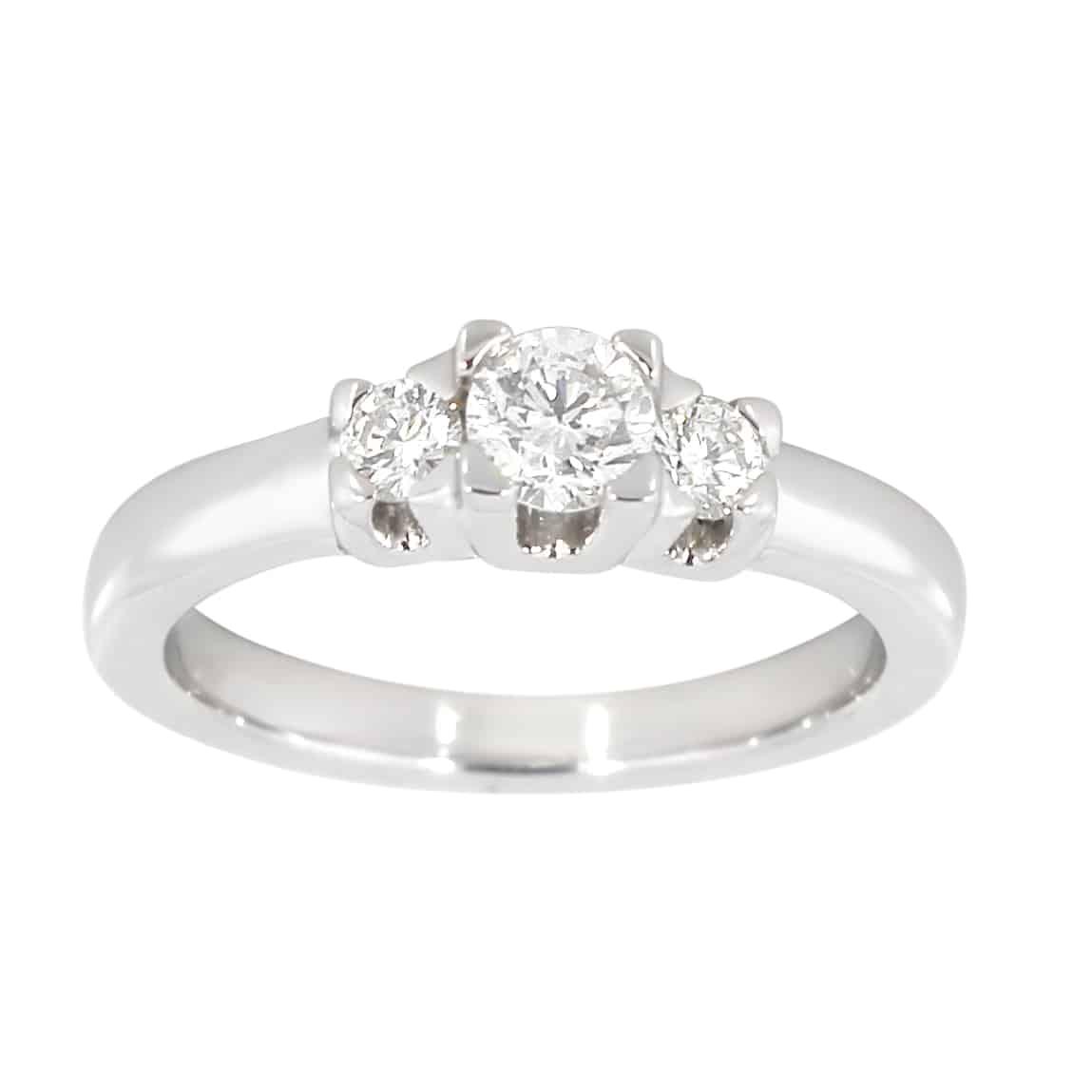 En forlovelsesring med et karakteristisk uttrykk, der tre glitrende diamanter er sentralt plassert for å fange lyset fra alle vinkler. Den runde skinnen i gult eller hvitt gull gir et tidløst preg og en komfortabel passform. Et gjennomført valg for deg som ønsker en ring med særpreg til det store øyeblikket.
