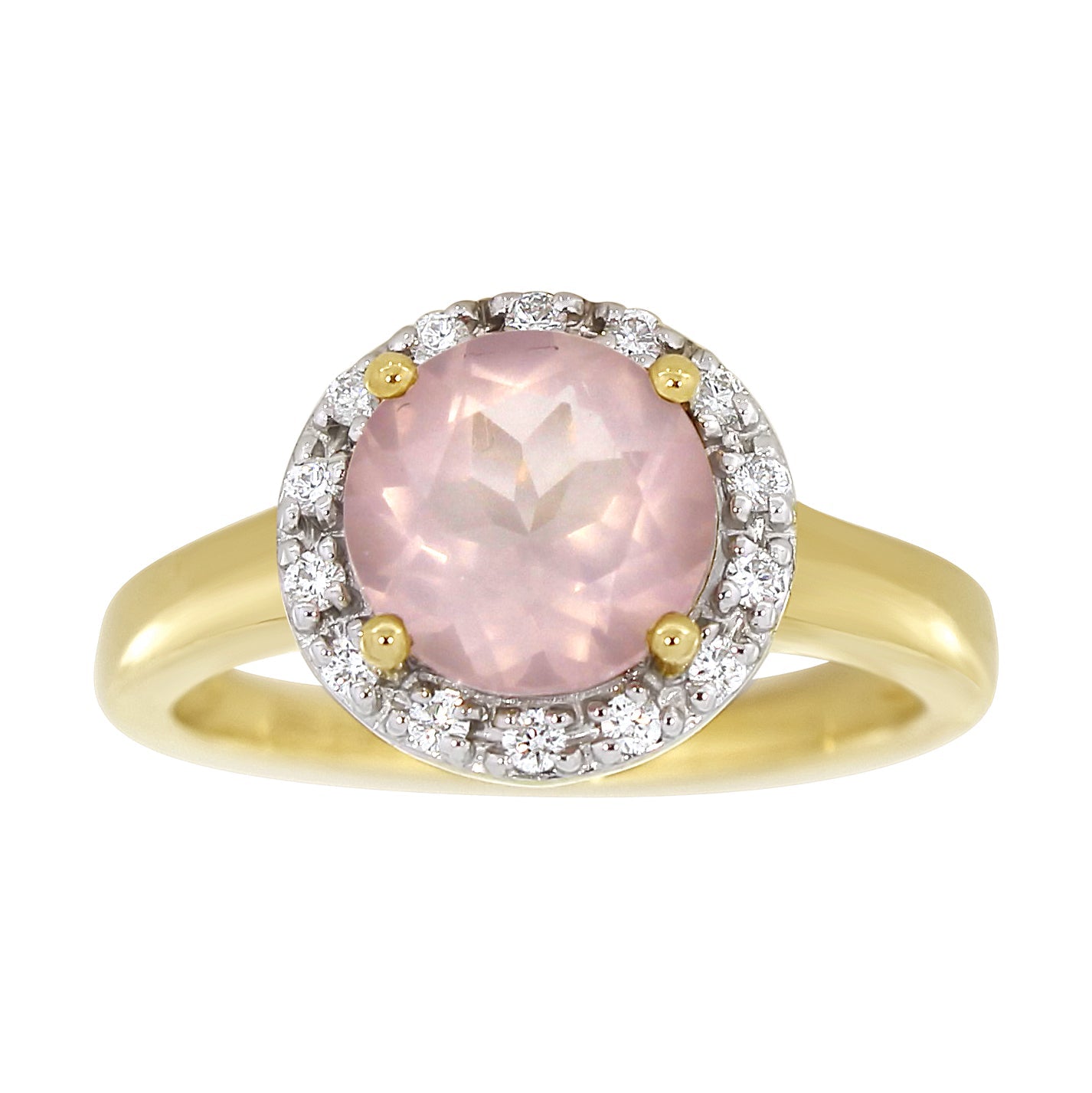 Diamantring i hvitt/gult gull 0.15ct TW/SI Diamanter med Rosekvarts