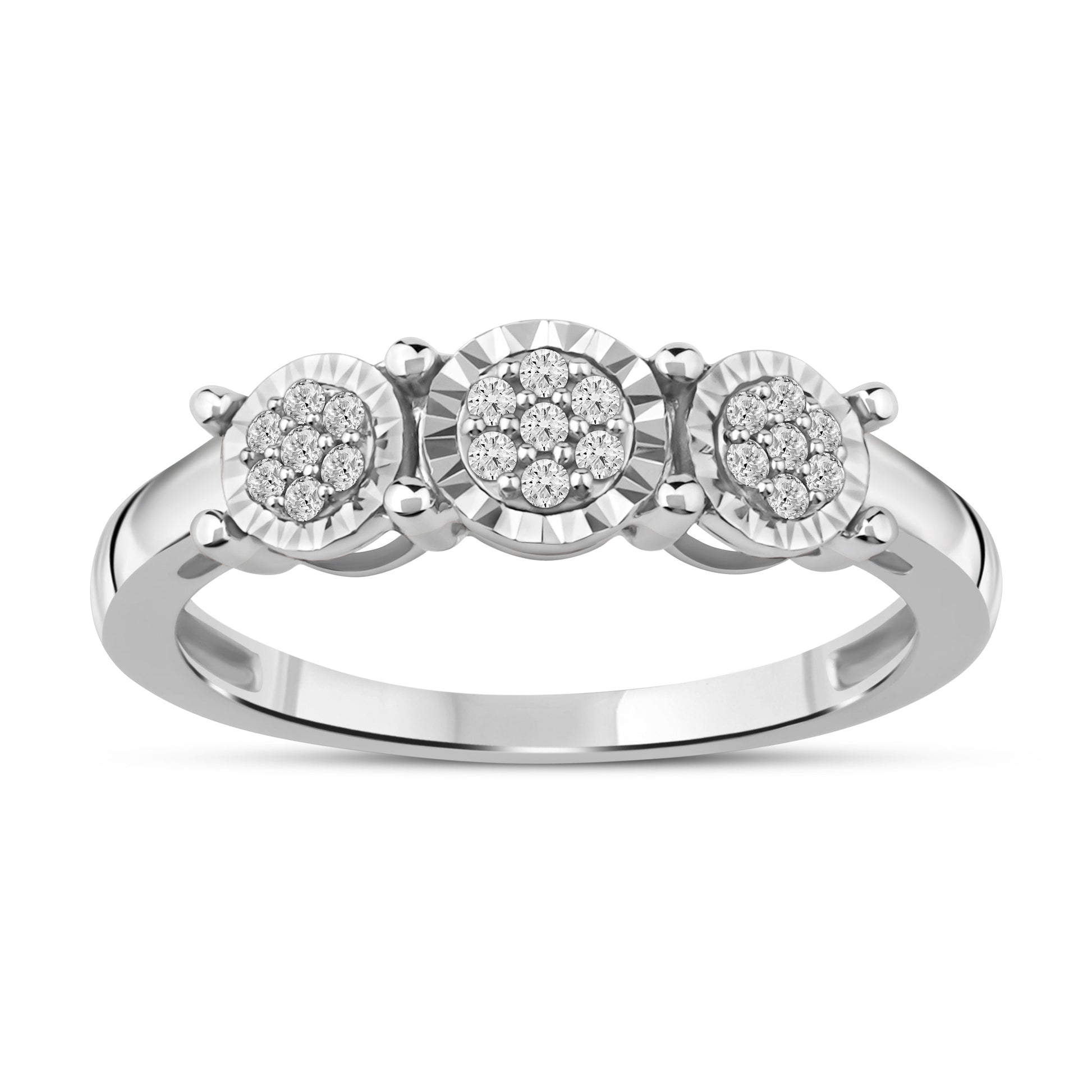 Elegant diamantring i 14 kt gult eller hvitt gull, utsmykket med 0.12 ct TW/SI diamanter. Ringens design med tre runde elementer, hver besatt med glitrende diamanter, skaper et balansert og tidløst uttrykk. Det edle gullet – enten i varme gule toner eller kjølig hvitt – fremhever diamantens glans og gir ringen et sofistikert preg.