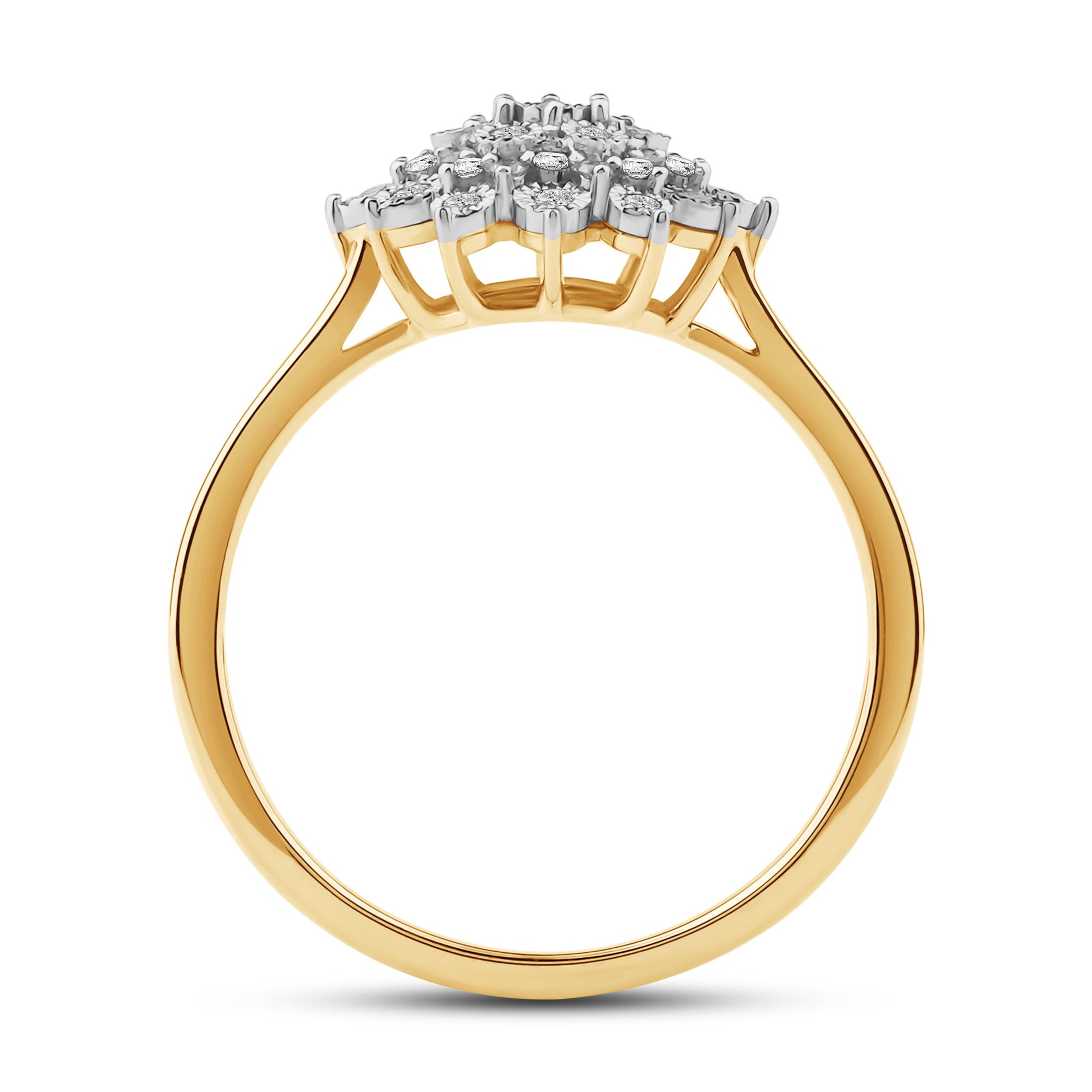 Eksklusiv diamantring i 14 kt gult eller hvitt gull, utsmykket med 0.22 ct TW/SI diamanter. Midtpartiet er utformet som en praktfull rosett med flere lag av glitrende diamanter, som gir ringen et imponerende og luksuriøst uttrykk. Den slanke ringskinnen i edelt gull fremhever diamantens glans og gjør designet til et tidløst smykke som alltid fanger oppmerksomheten.