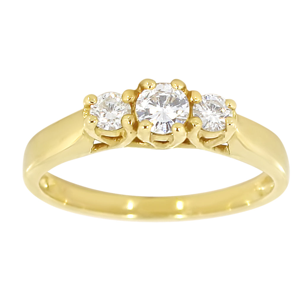 Diamantring i Gult/Hvitt Gull og tre Diamanter 0,50 TW/SI