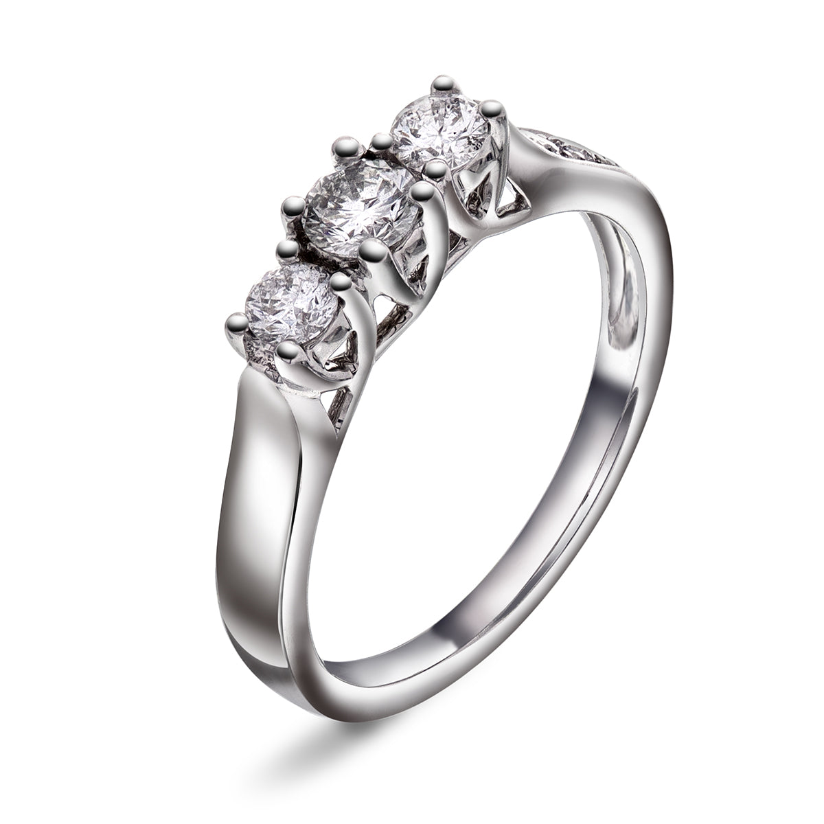 Denne forlovelsesringen i 14 karat gull kombinerer klassisk eleganse med tidløs symbolikk. Tre briljantslipte diamanter står i fokus, hvor midtsteinen er lett fremhevet for å skape et harmonisk og balansert uttrykk. Ringen leveres i både gult og hvitt gull, slik at du kan velge det uttrykket som passer best. En stilren og solid ring – perfekt for et løfte som varer.
