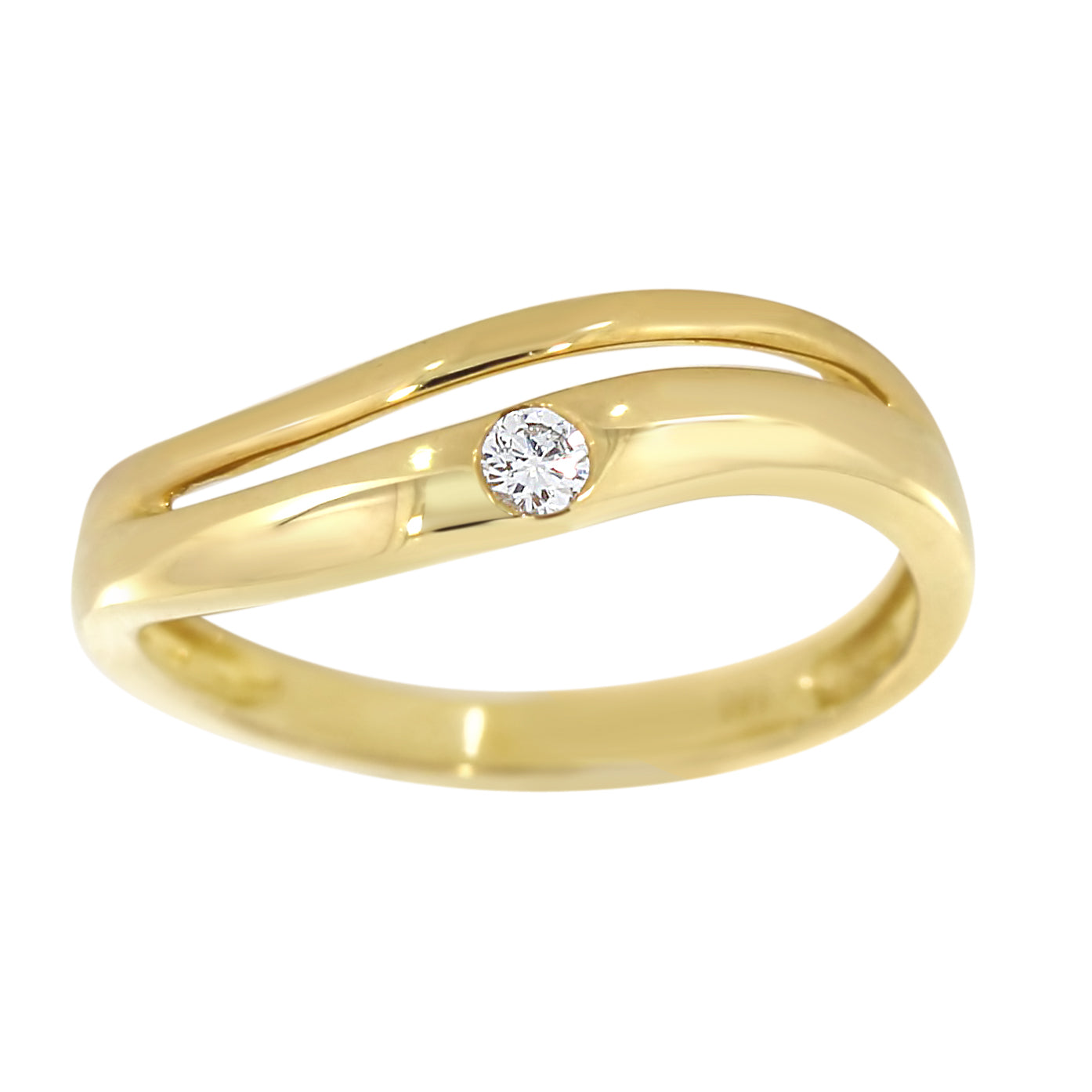Elegant ring i 14 karat gull med et åpent, bølgende design og én brillantslipt diamant på 0.06 ct TW/SI. Diamanten er nedsenket i gullbåndet og fremheves av det rene linjespillet som gir ringen et moderne og raffinert uttrykk. Modellen finnes i både hvitt og gult gull – to stilfulle varianter med hver sin karakter.