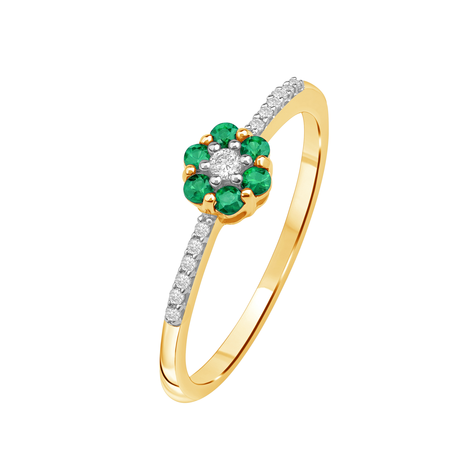 Denne elegante ringen kombinerer det klassiske med det fargesterke. En blomsterformet rosett i 0.19 ct smaragder rammer inn 0.07 ct glitrende diamanter, og gir et smykke med både varme og karakter. Den slanke ringskinnen gir designet en letthet som gjør den like fin til hverdagsbruk som til spesielle anledninger. Finnes i både gult og hvitt gull.