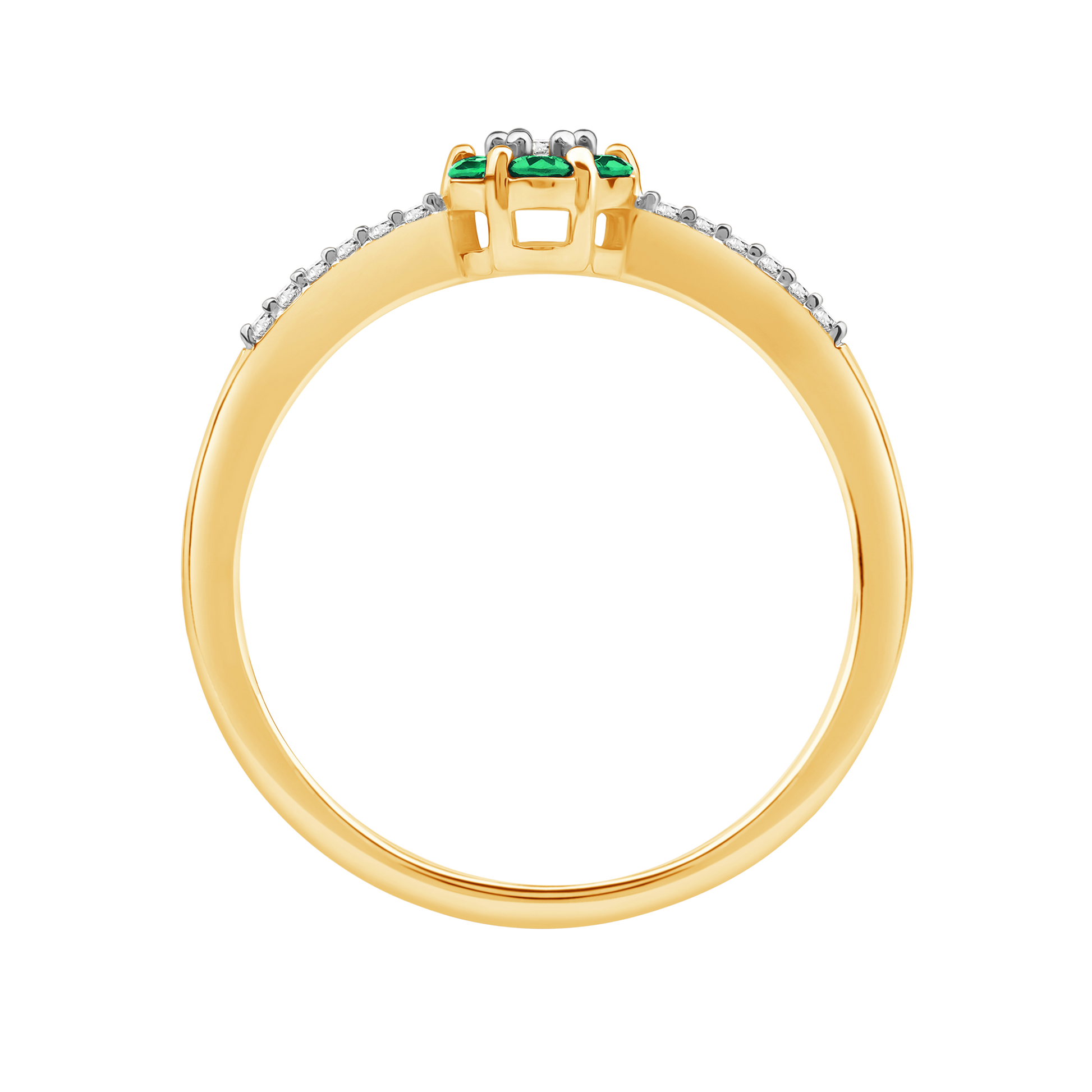 Diamantring i Hvitt/Gult Gull 0.07 tw/si og 0.19ct smaragd