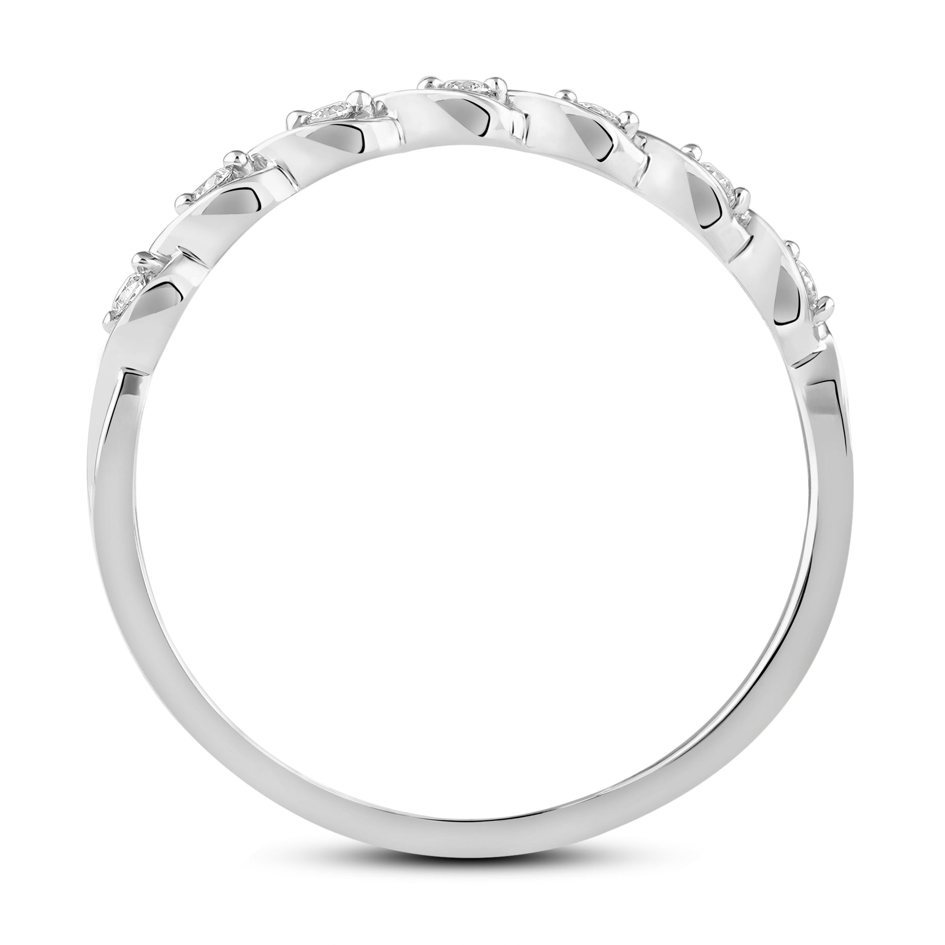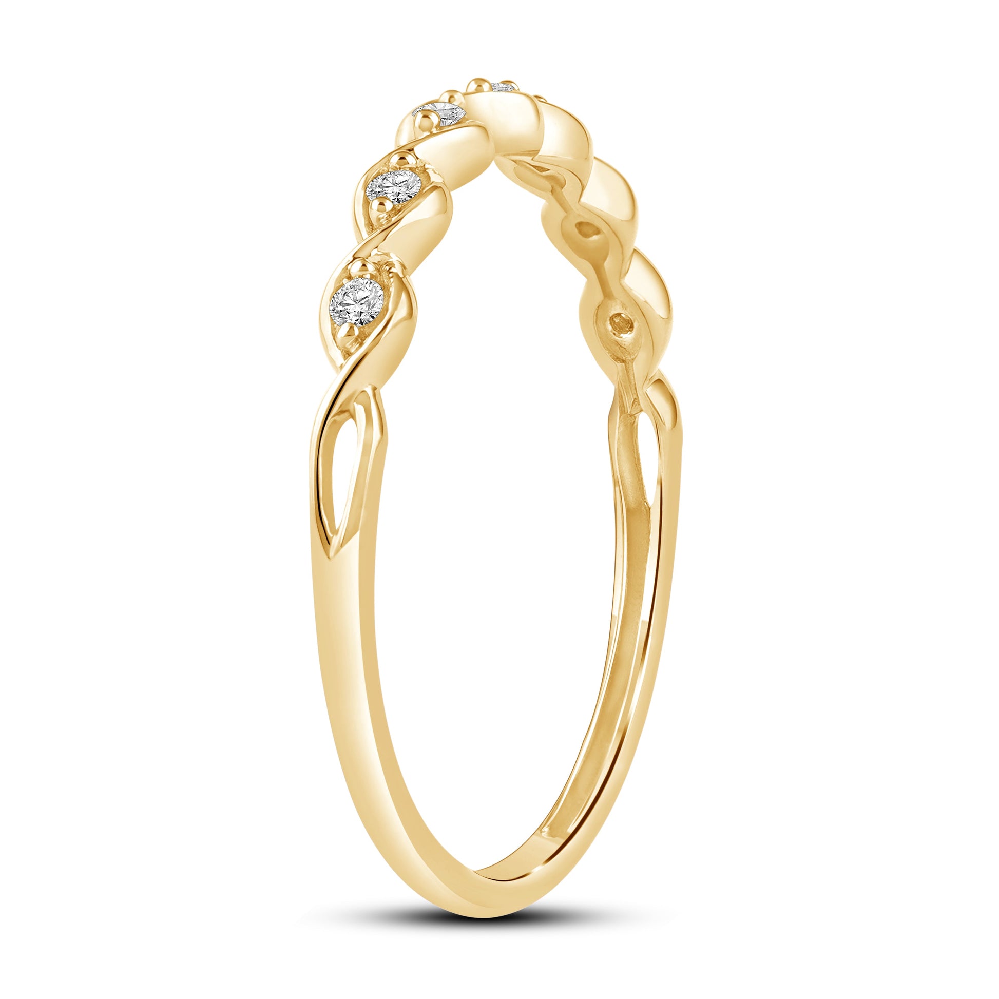 Tidløs ring i 14 karat gull med elegante tvunnete detaljer og totalt 0.10 ct diamanter vakkert innfelt i designet. Diamantene er plassert i et mykt bølgende mønster som gir ringen et delikat og harmonisk uttrykk. Kombinasjonen av strukturert overflate og glitrende steiner gir ringen en moderne, men klassisk følelse – perfekt alene eller stablet med andre ringer.