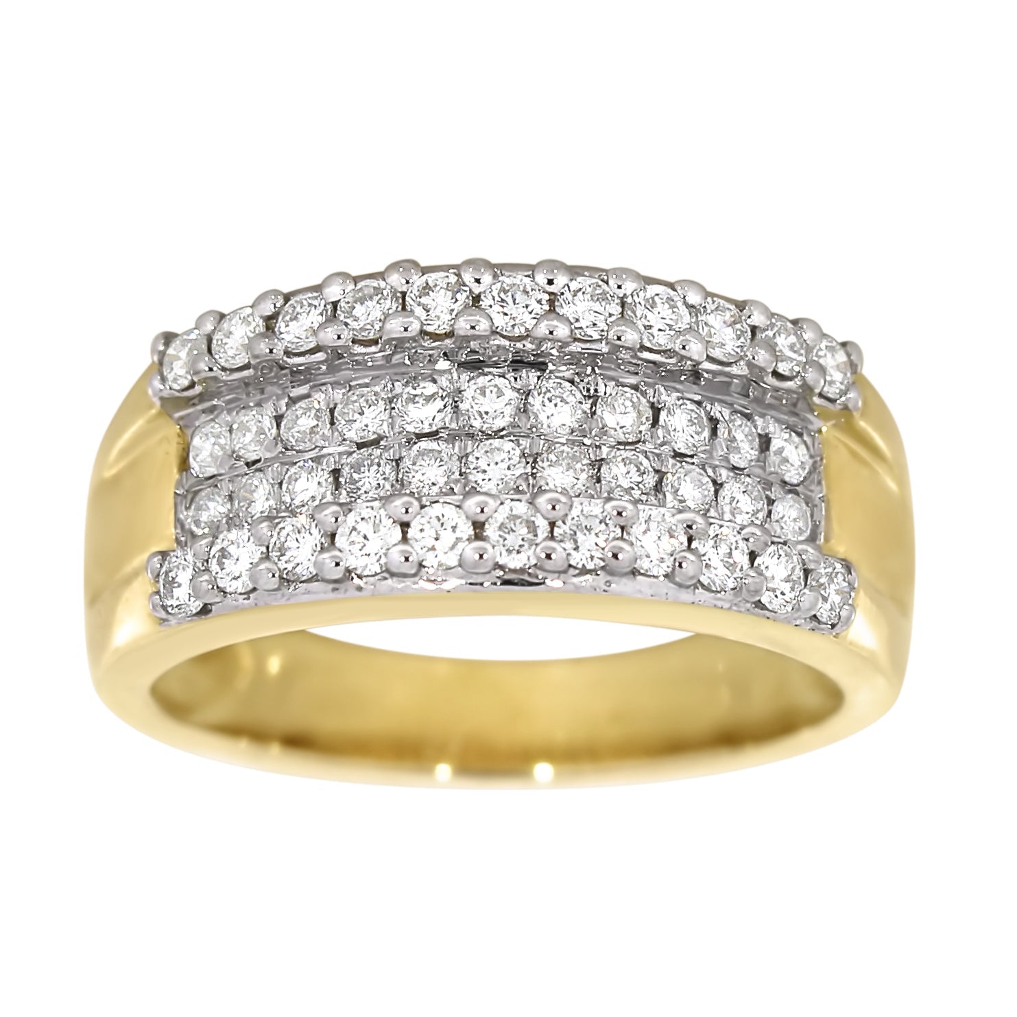 Denne ringen i 14 karat hvitt gull er et perfekt møte mellom eleganse og moderne design. Med fire glitrende diamantrekker som til sammen utgjør 0,75 ct, skaper den et iøynefallende uttrykk som fanger lyset fra alle vinkler. Et sofistikert smykke som passer like godt til spesielle anledninger som til å tilføre et eksklusivt preg i hverdagen.