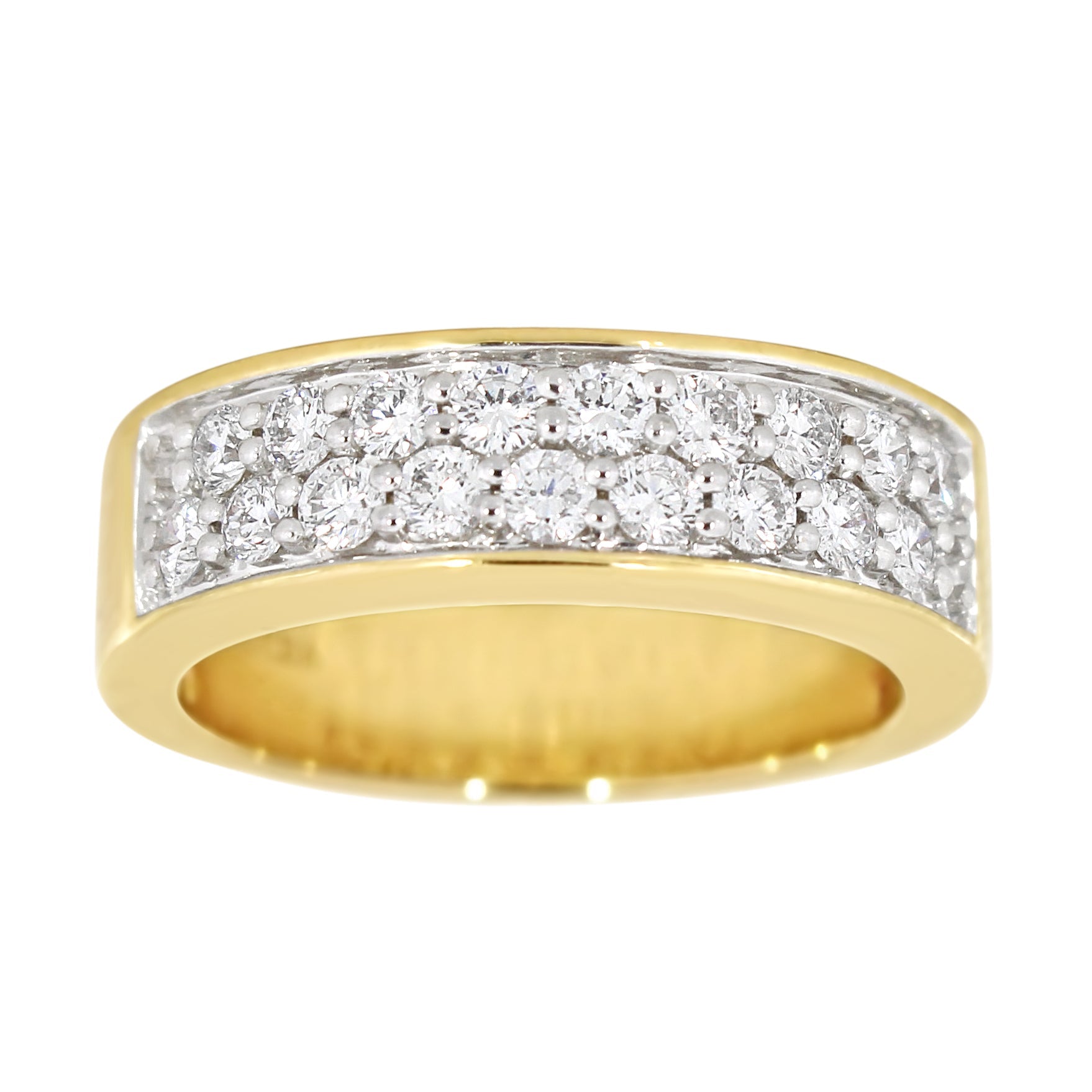 Eksklusiv diamantring i 14 karat hvitt gull med et elegant og balansert design, vakkert prydet med 1,00 ct brillantslipte diamanter. De to radene med glitrende diamanter skaper et sofistikert uttrykk som kombinerer moderne stil med klassisk eleganse. Et strålende smykke som tilfører et snev av luksus til både hverdagsantrekk og festlige anledninger, og som vil bli en tidløs favoritt i smykkesamlingen.