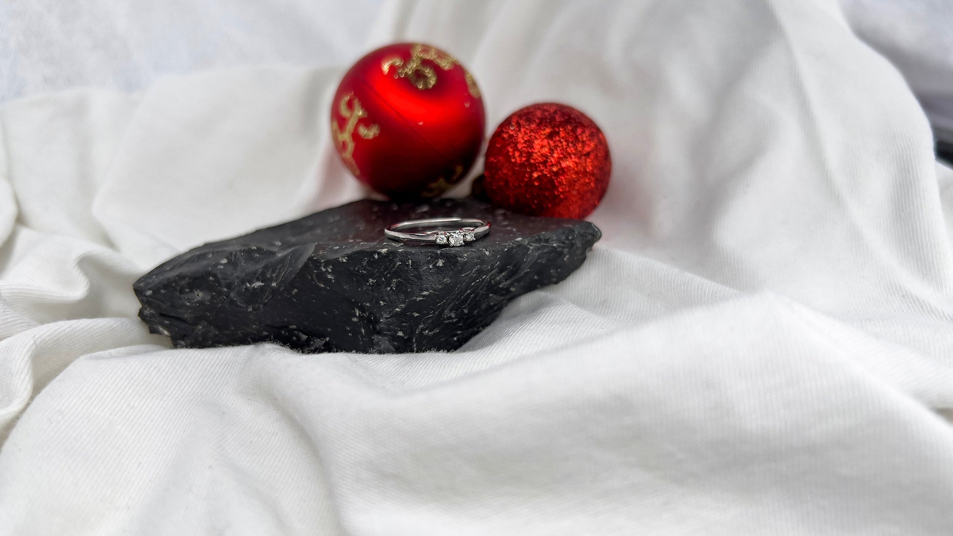 Tidløs og elegant ring som kombinerer enkelhet og symbolikk i et tidløst design. Tre diamanter er plassert tett sammen og gir ringen et balansert og klassisk uttrykk, mens det slanke båndet fremhever steinenes glans. Kommer i 14 karat gult eller hvitt gull – et gjennomført valg for deg som ønsker å fri med noe elegant og varig.