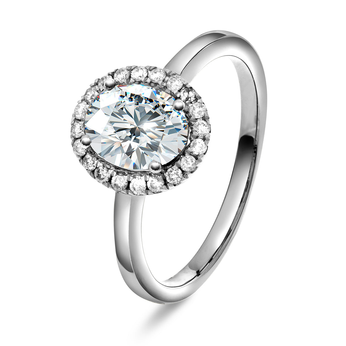Strålende ring i 14 karat hvitt gull med en imponerende hvit topas på 1,60 ct, vakkert omkranset av 0,30 ct briljantslipte diamanter. Den klare topasen gir ringen et eksklusivt og luksuriøst uttrykk, mens diamantene tilfører en tidløs glans og et blendende lys- og glansspill. Et perfekt smykke for deg som ønsker en iøynefallende ring med elegant design og utsøkt håndverk.