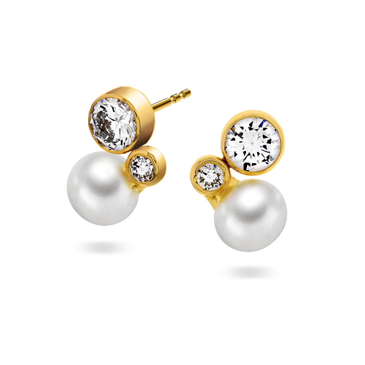 Gullørepynt i 14kt Gult Gull (585), med Perle og Zirkonia