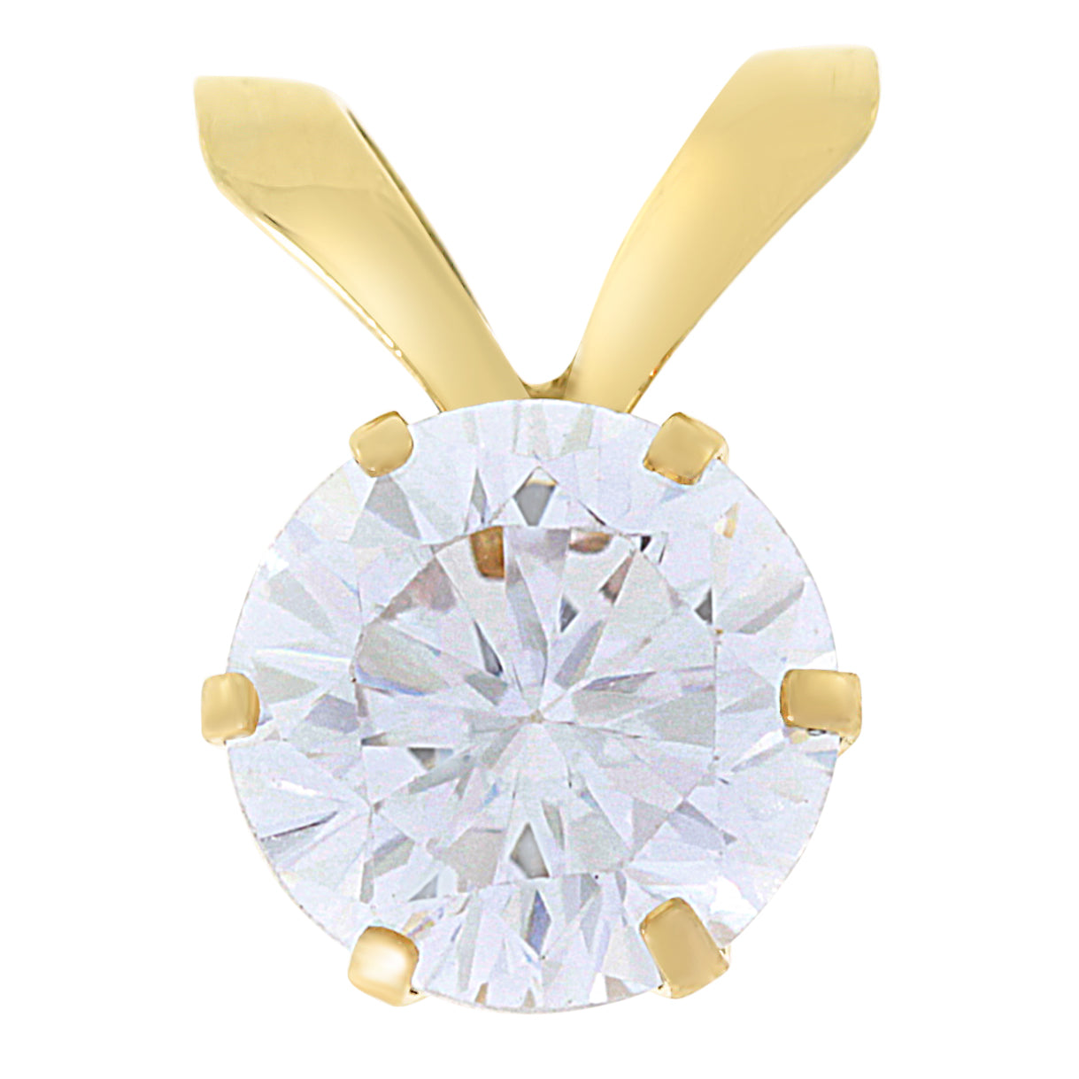 Klassisk anheng i 14 karat gult gull med en rund, fasettert zirkonia på hele 8 mm. Den strålende stenen holdes elegant på plass av seks kraftige klør som fremhever stenens lyslek og klare glans.