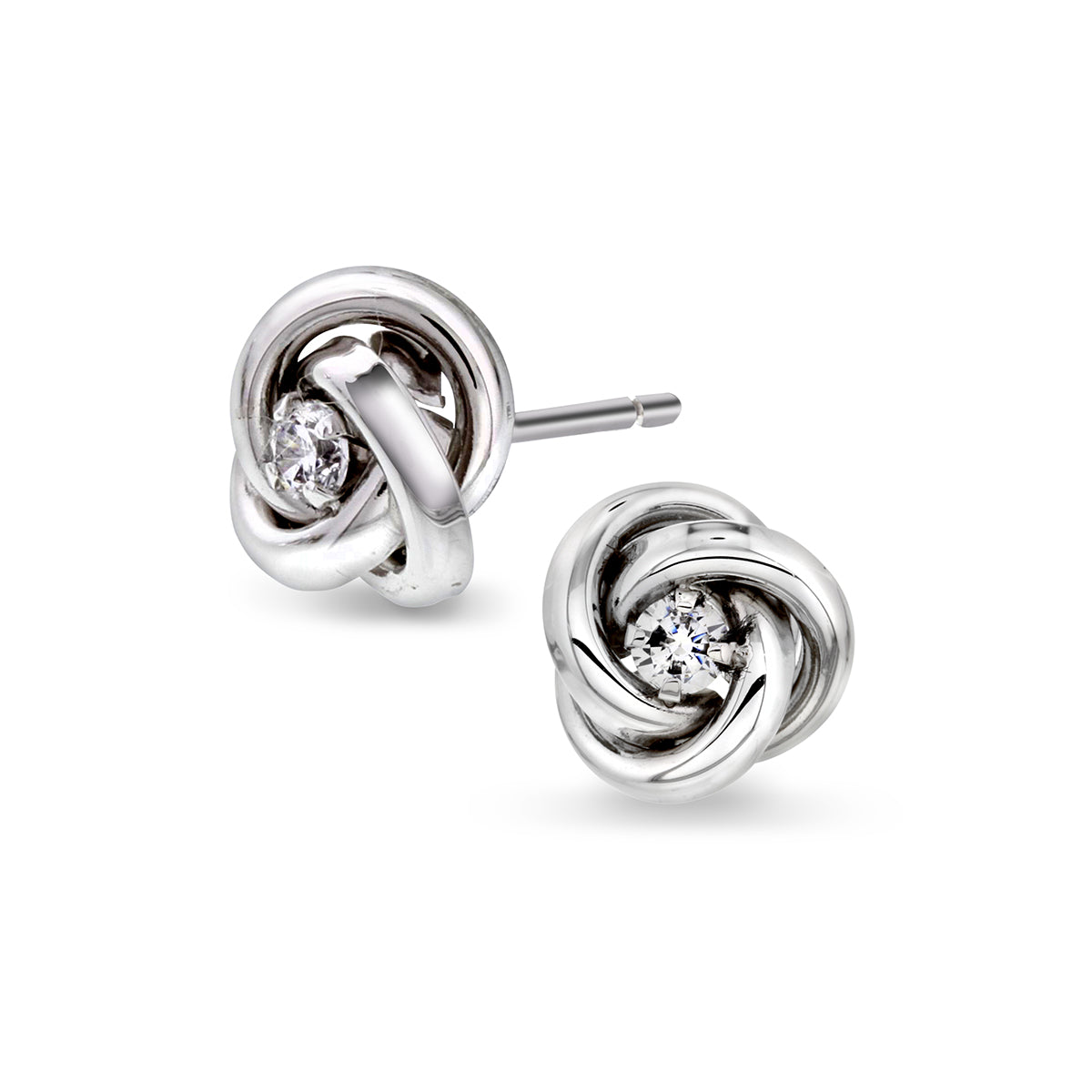 Flotte knute-øredobber i 14k (585) hvitt gull med zirkonia.