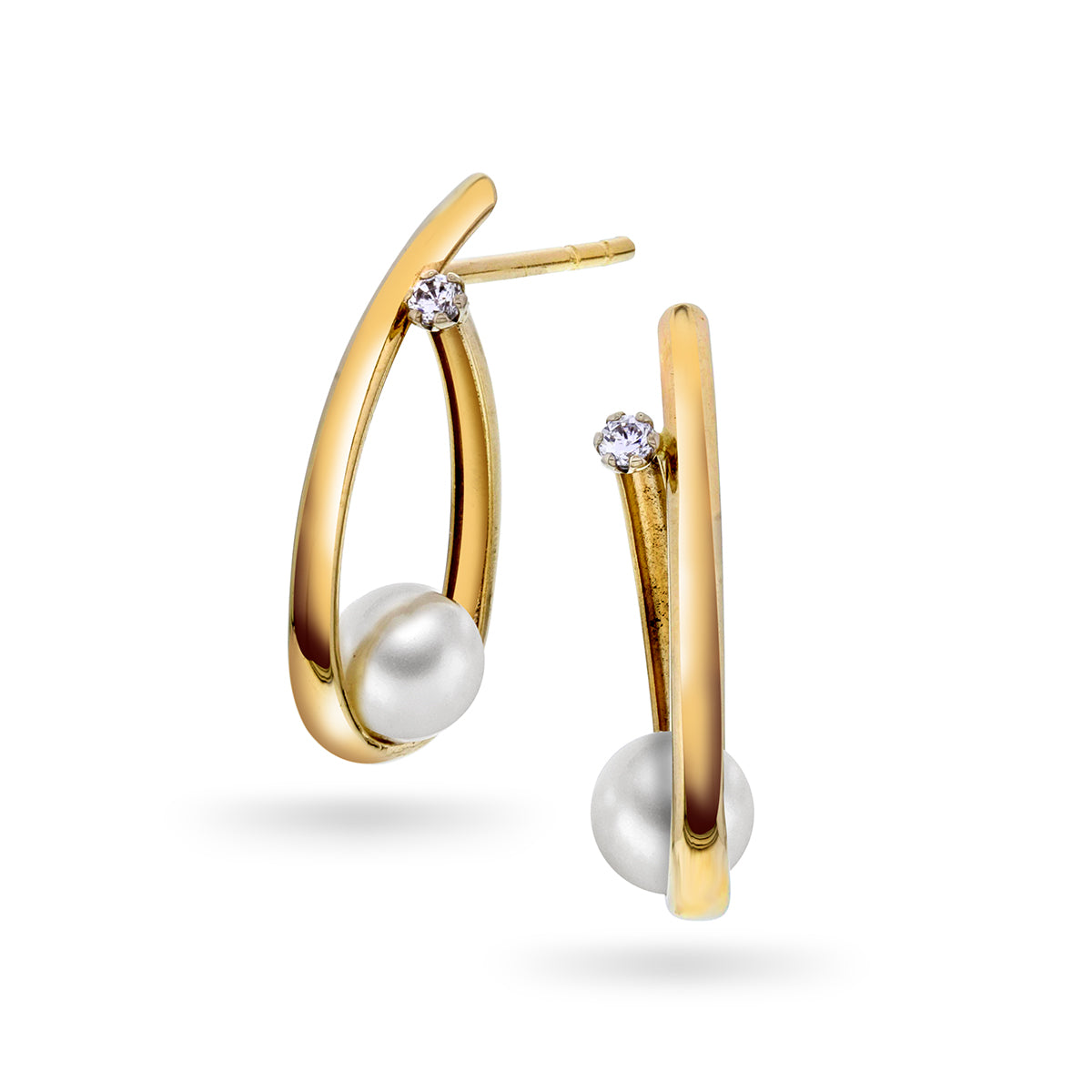 Gullørepynt i 14kt Gult Gull (585) - Creole med Perler og Zirkonia