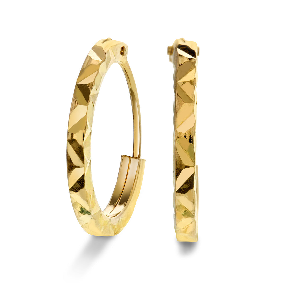 Gullørepynt i 14kt Gult Gull (585) - Creoler med Geometrisk mønster - 13mm
