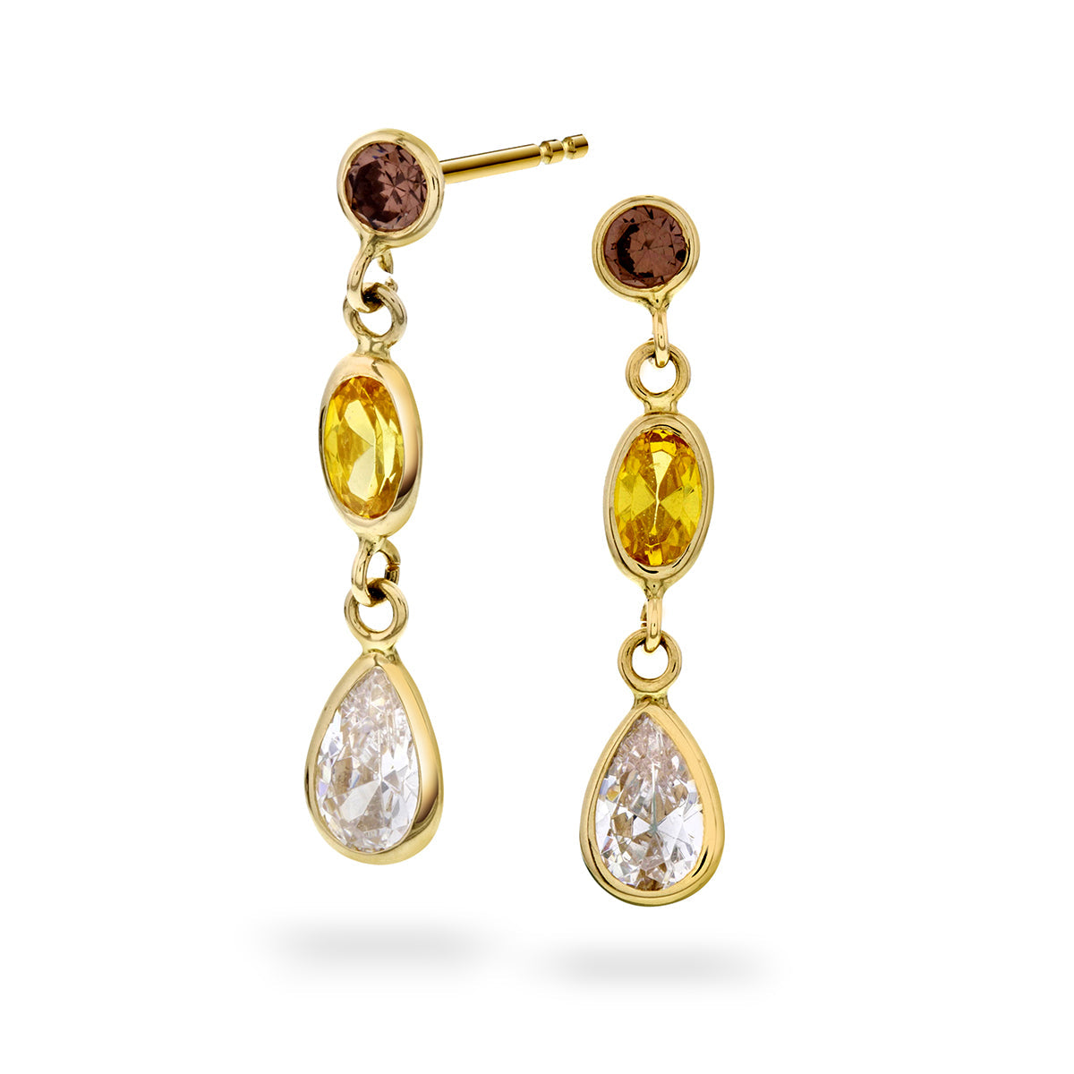 Gullørepynt i 14kt Gult Gull (585) - Dråpeformet med Flerfarget Zirkonia