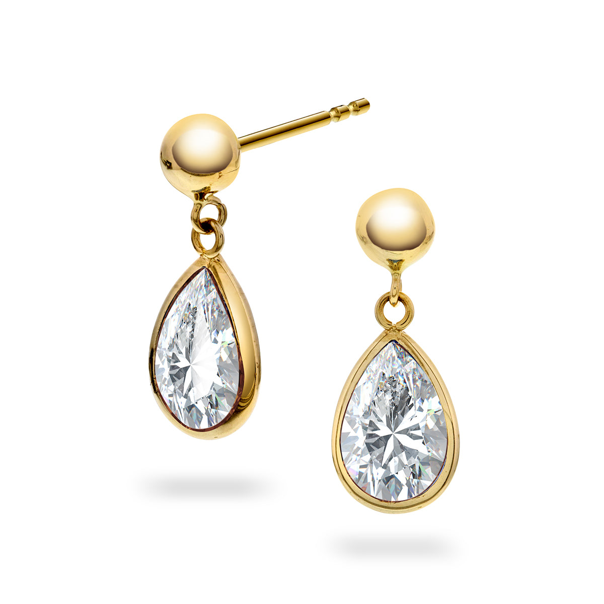 Gullørepynt i 14kt Gult Gull (585) - Dråper med Zirkonia