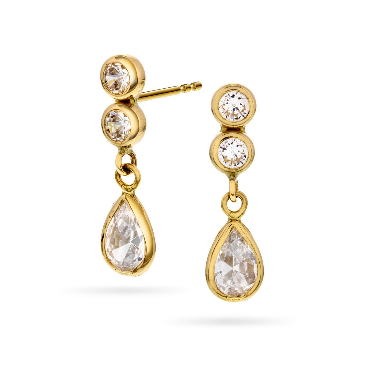 Gullørepynt i 14kt Gult Gull (585) - Hengende Zirkonia-dråper