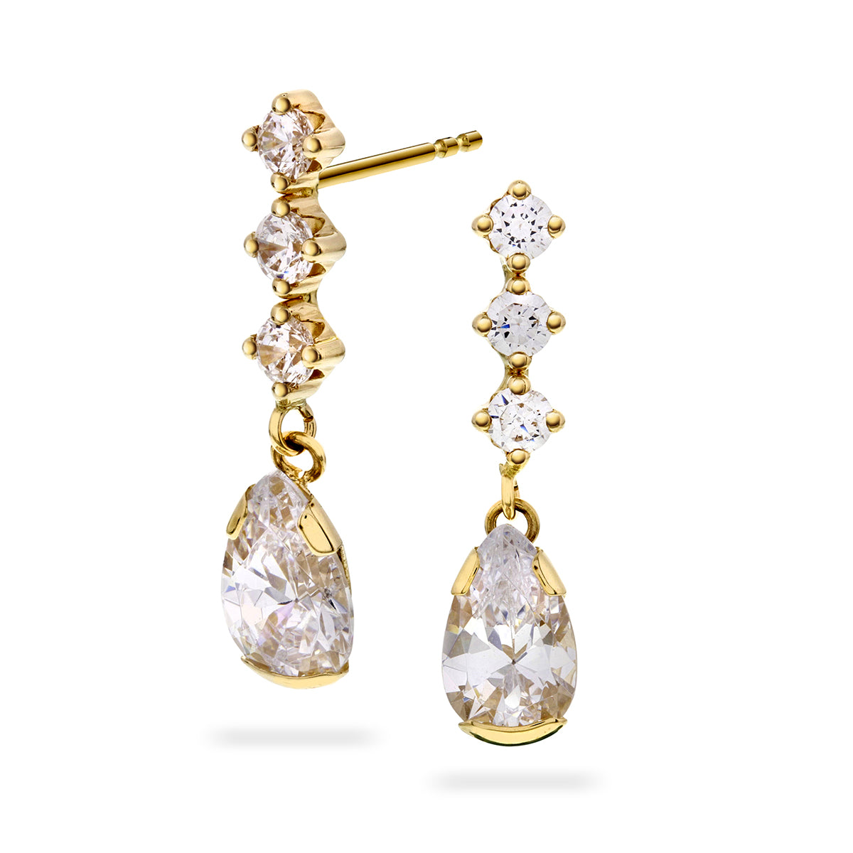 Gullørepynt i 14kt Gult Gull (585) Med Zirkonia