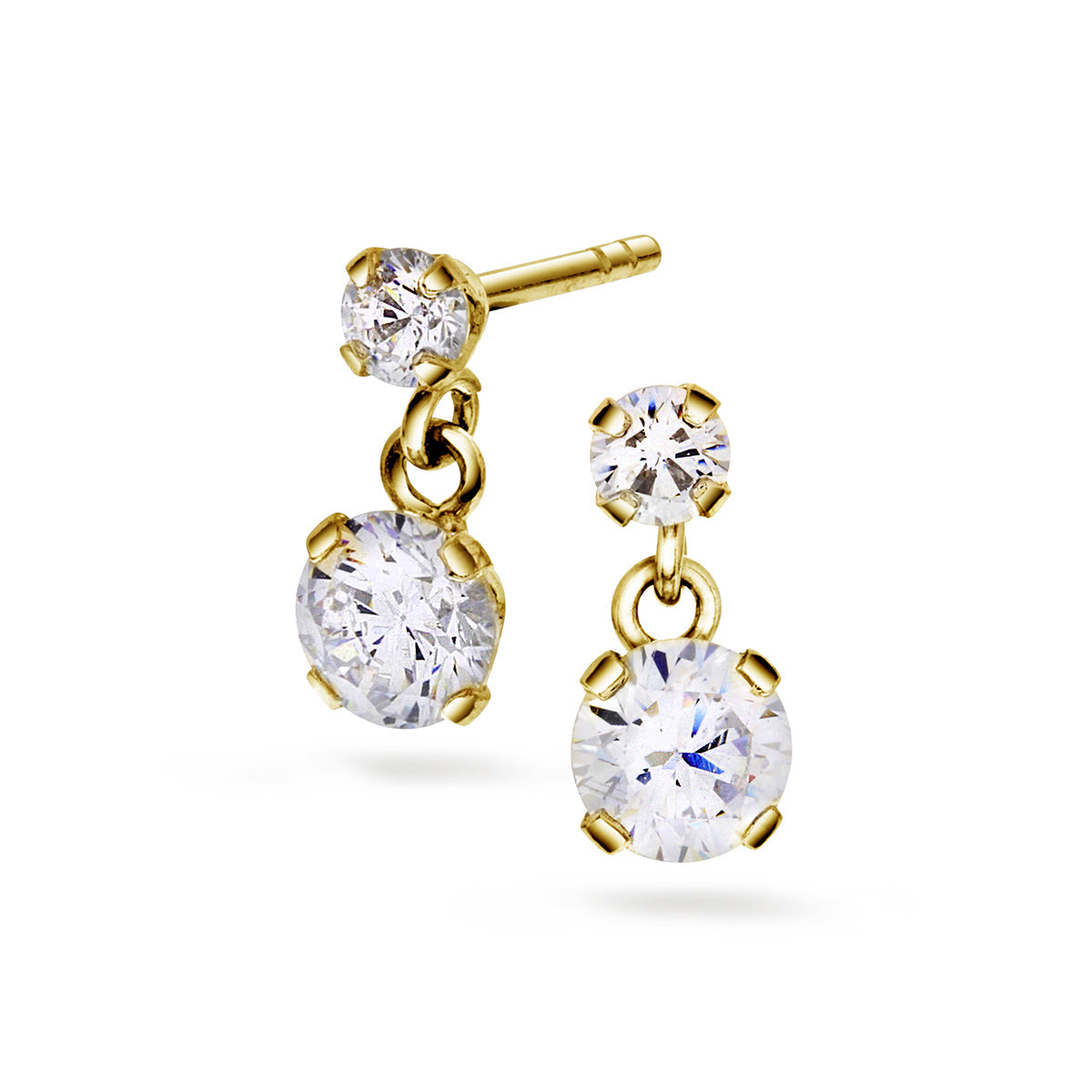 Gullørepynt i 14kt Gult Gull (585) - Zirkon - Hengende