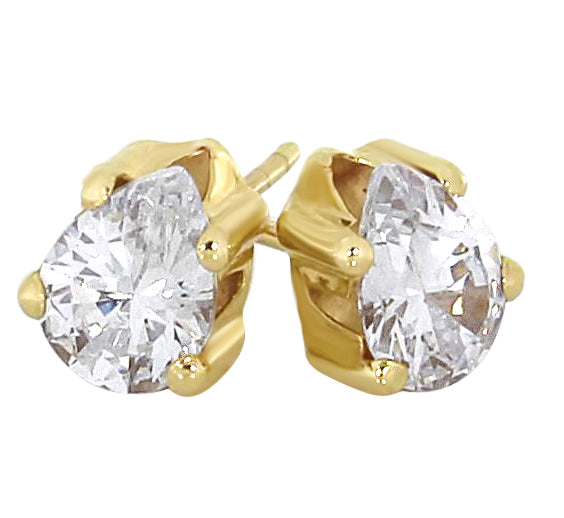 Gullørepynt i 14kt Gult/Hvitt Gull (585) - Zirkonia - Dråpeform
