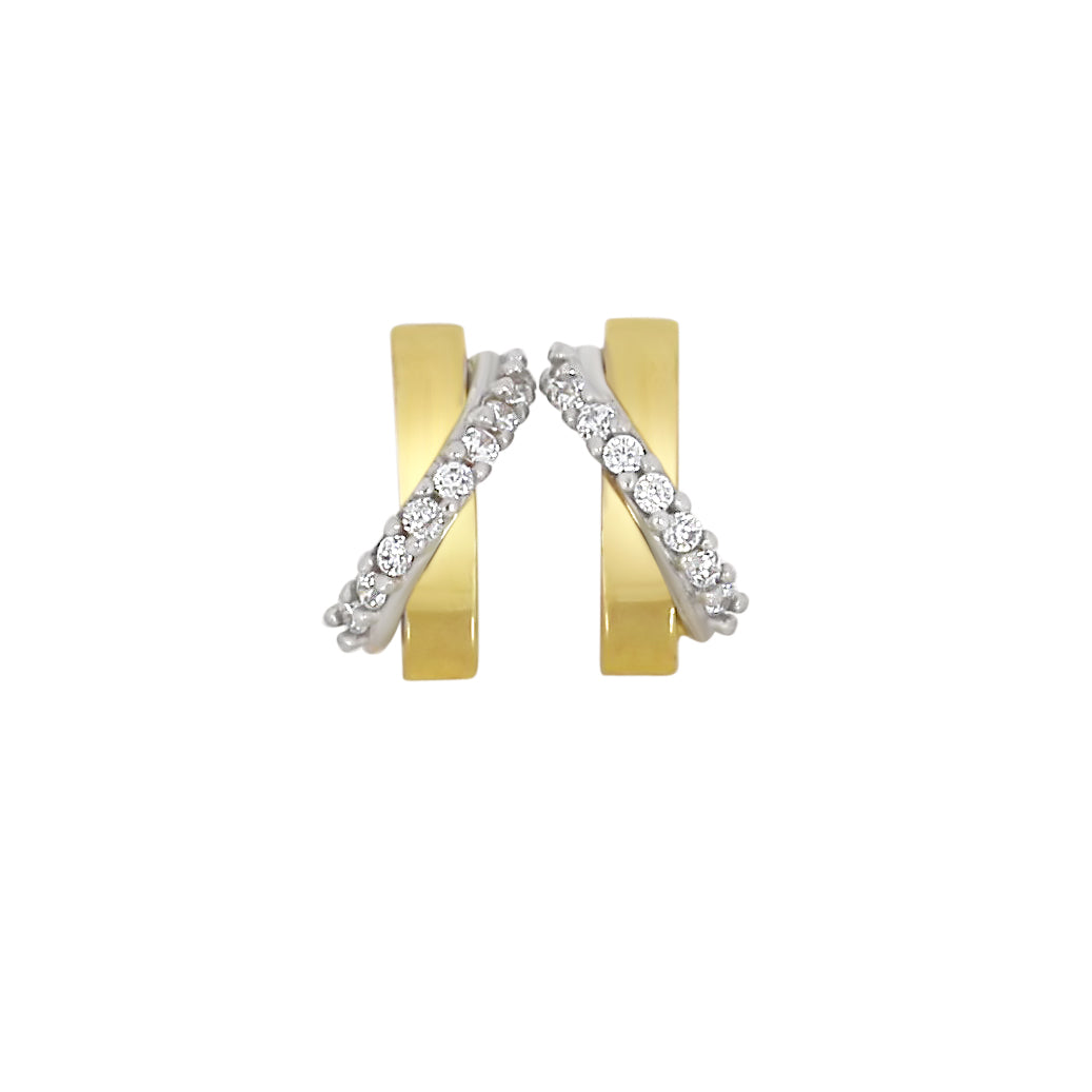 Gullørepynt i 14kt Gult og Hvitt Gull (585) med Zirkonia - Tofarget Creole
