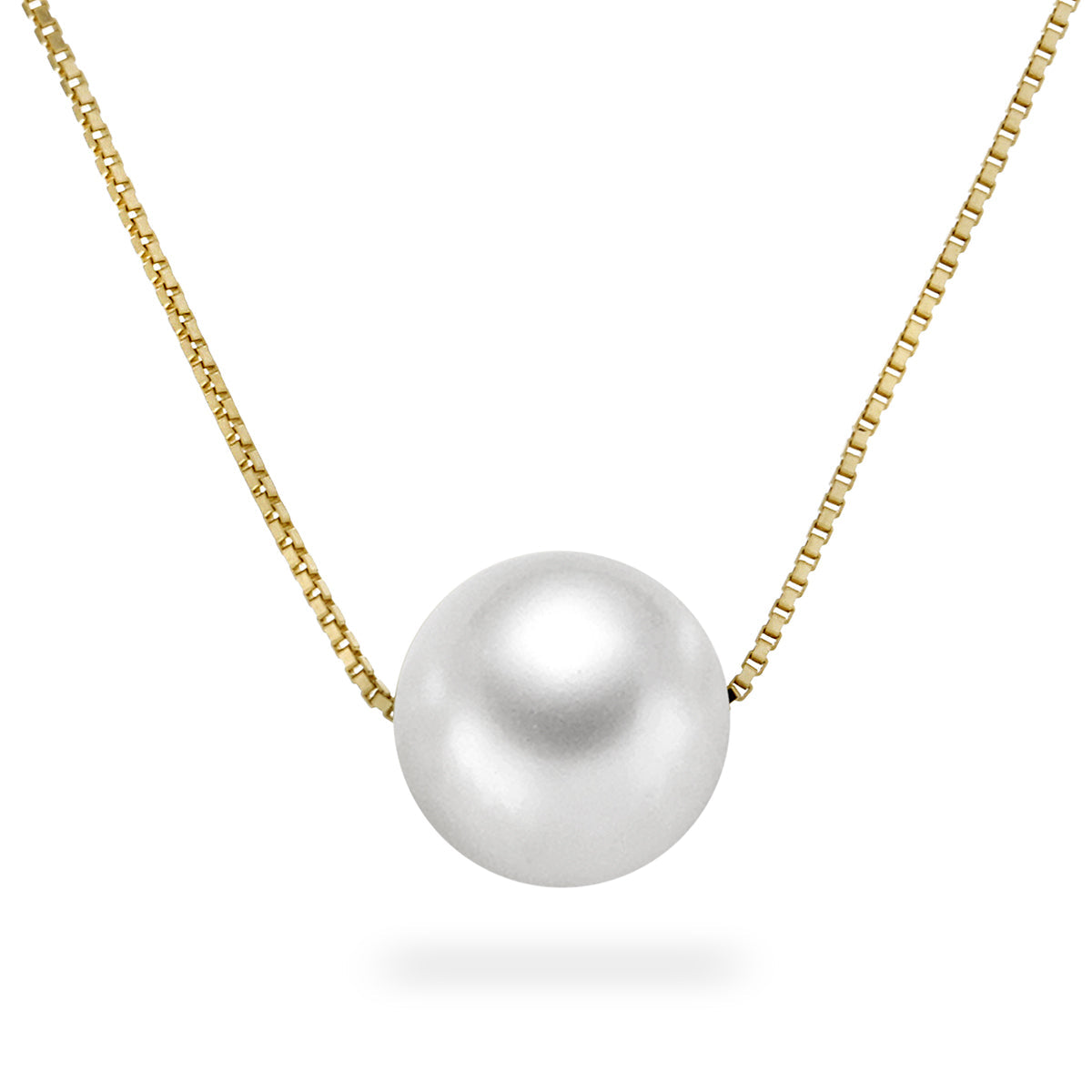Elegant anheng i gull med en nydelig hvit ferskvannsperle i midten. Perlen har en naturlig glans og rund form som gir smykket et sofistikert uttrykk, perfekt både til hverdagsbruk og spesielle anledninger. Den minimalistiske innfatningen lar perlen stå i fokus og fremhever dens myke skjønnhet.