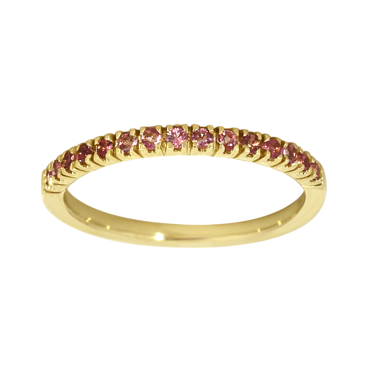 Delikat og strålende – denne allianseringen i glansfullt gult gull er prydet med vakre rosa turmaliner på totalt 0.20 ct. De livlige fargetonene gir et eksklusivt og stilrent uttrykk, perfekt for deg som ønsker et smykke med karakter og eleganse. Like fin alene som i kombinasjon med andre ringer for et mer personlig uttrykk.