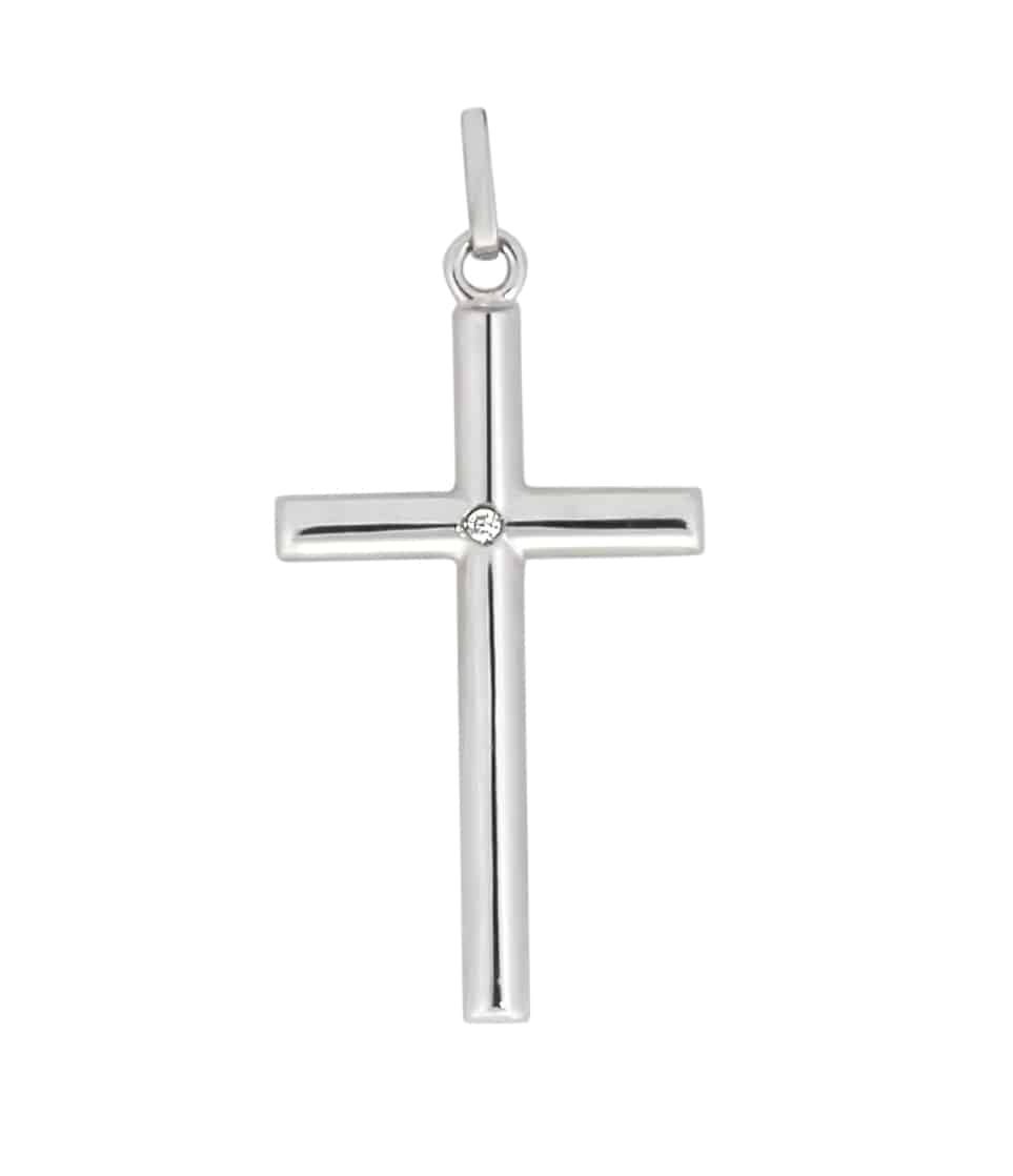 Kjempe fint kors i hvitt gull (585) 14k med zirkonia.
