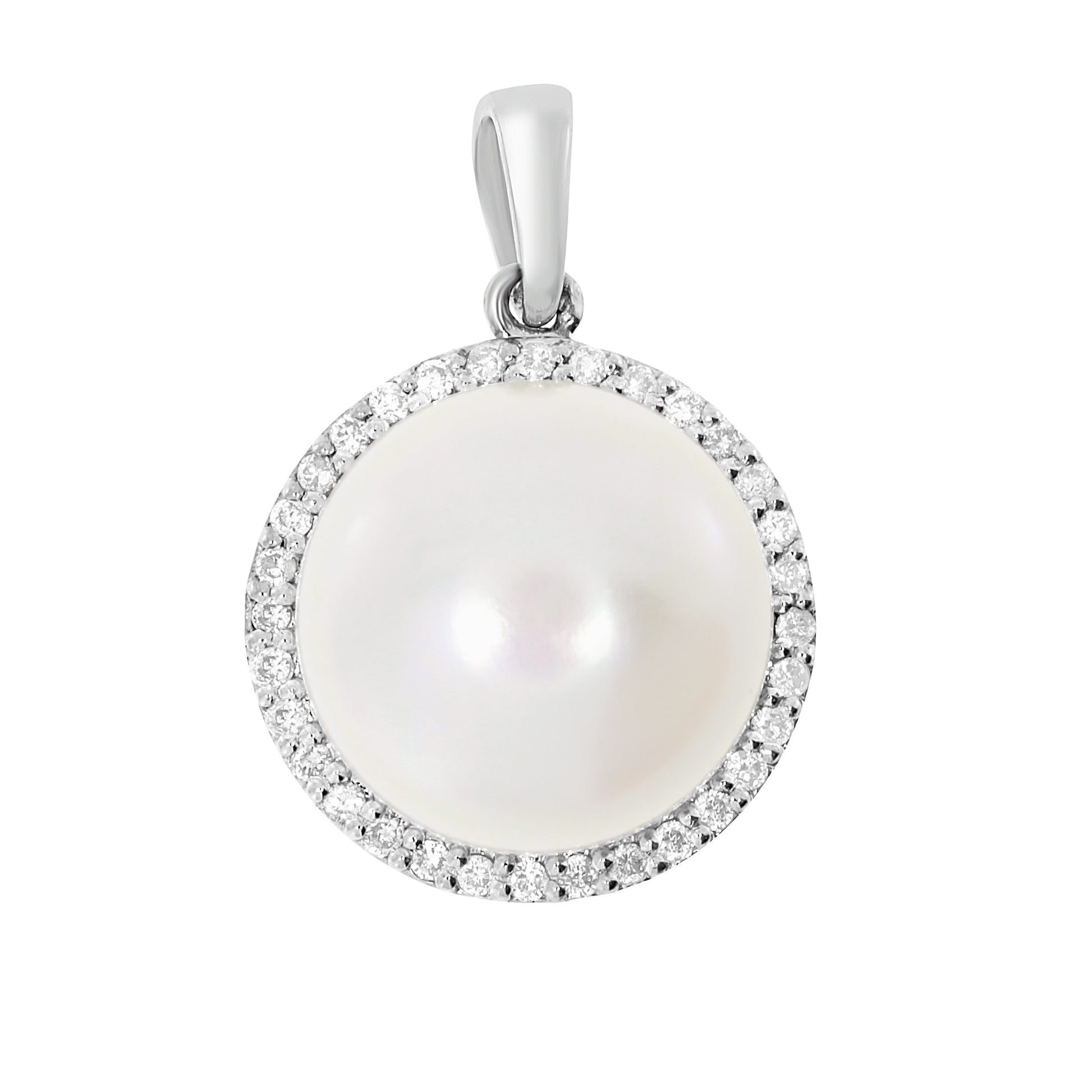 Halssmykke i 14kt Gult/Hvitt Gull (585), 0.15ct TW/SI Diamant og 11mm Perle