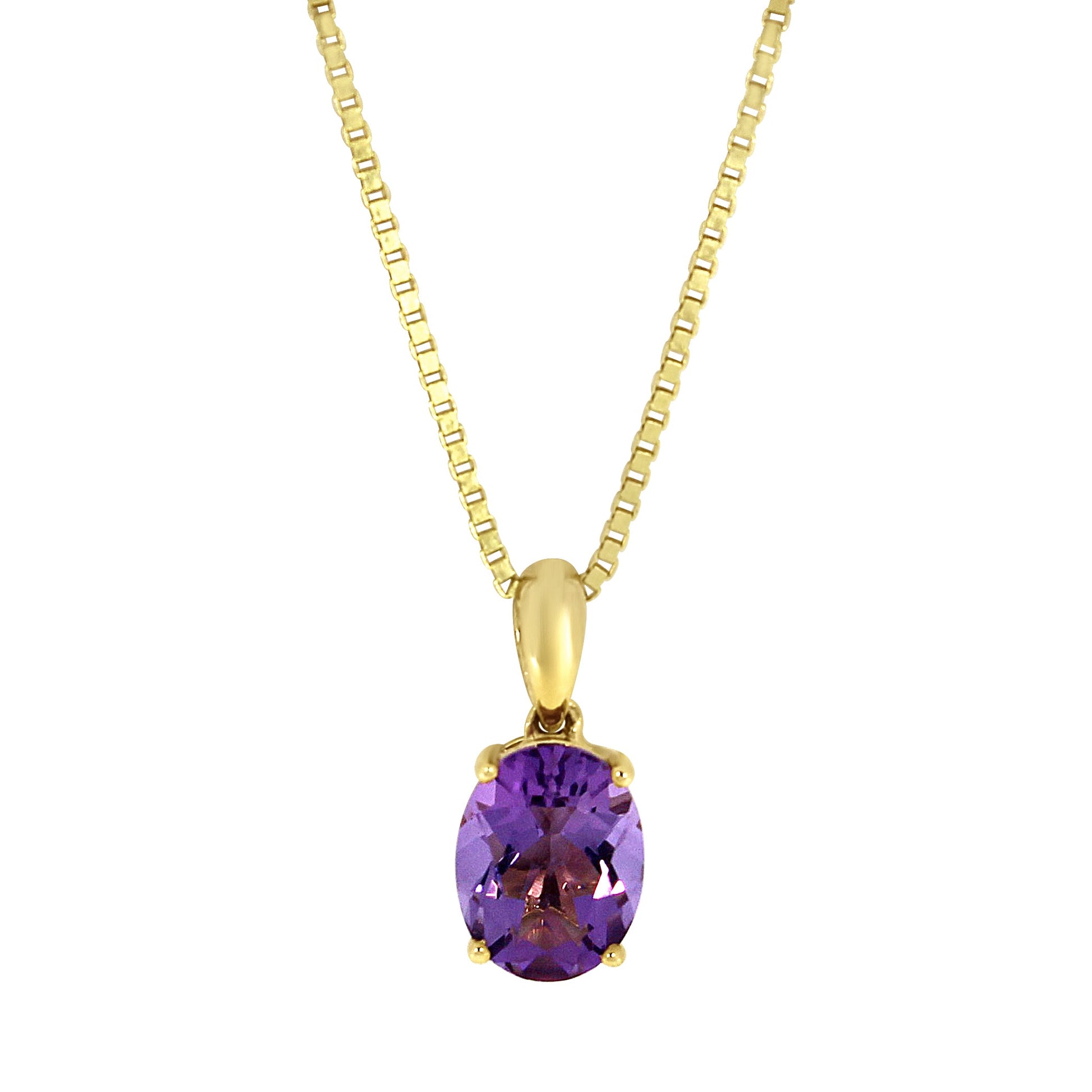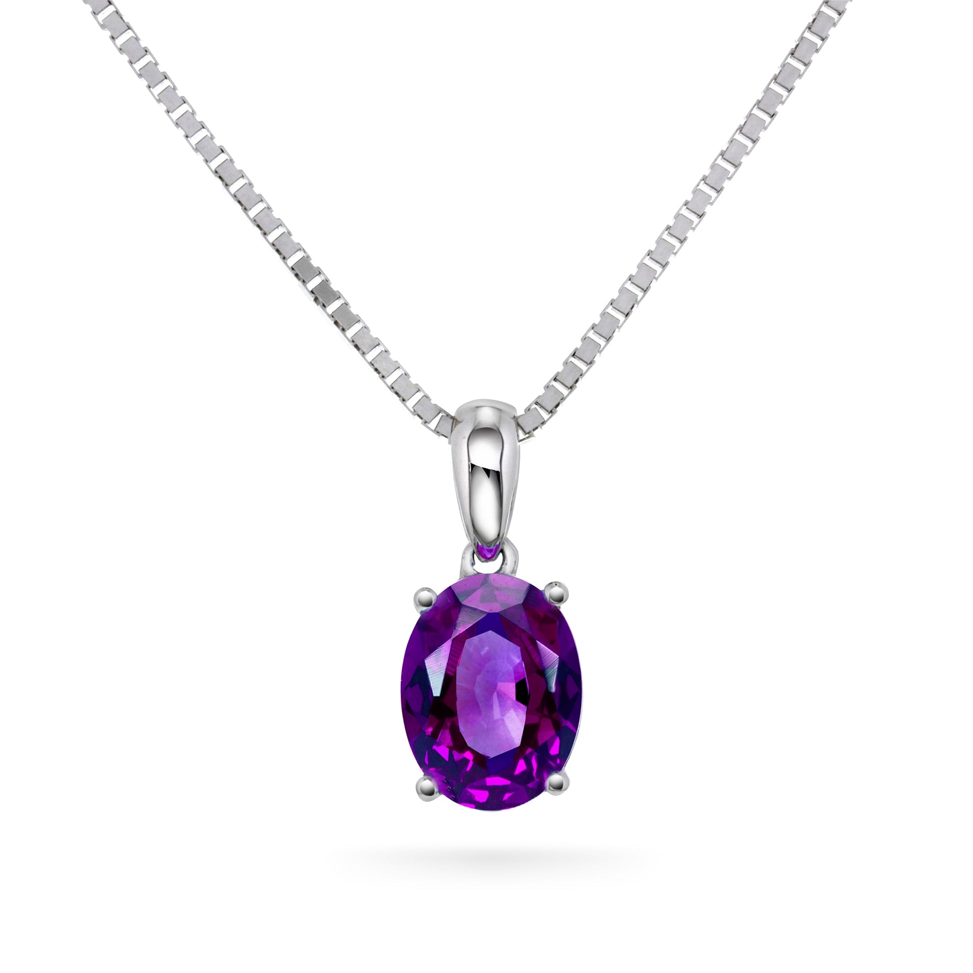 Elegant halssmykke i 14 karat gult eller hvitt gull med en ovalslipt ametyst på 2.50 ct