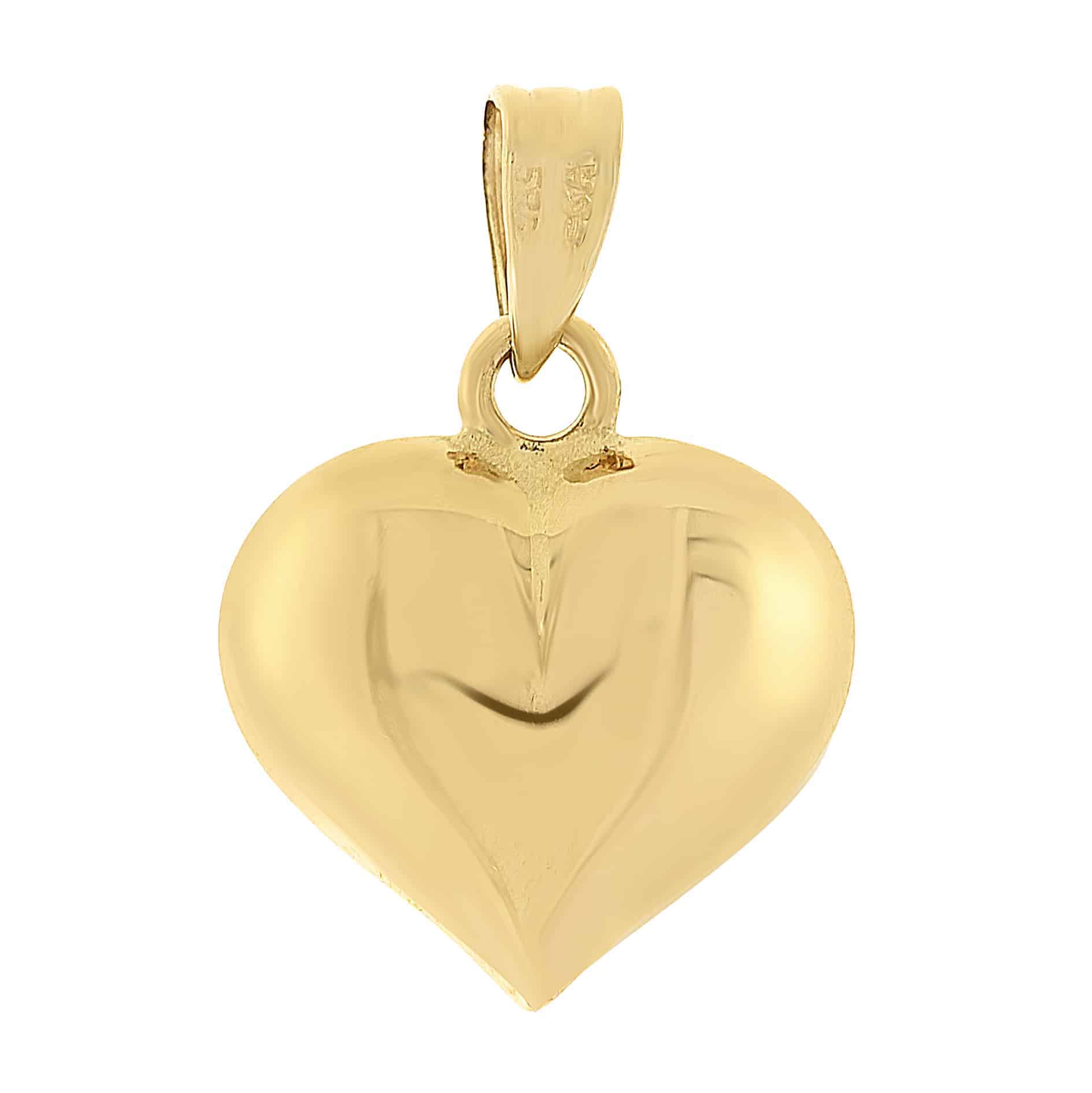 Tidløst halssmykke med hjerte, 14 mm i 14KT (585) gult gull.