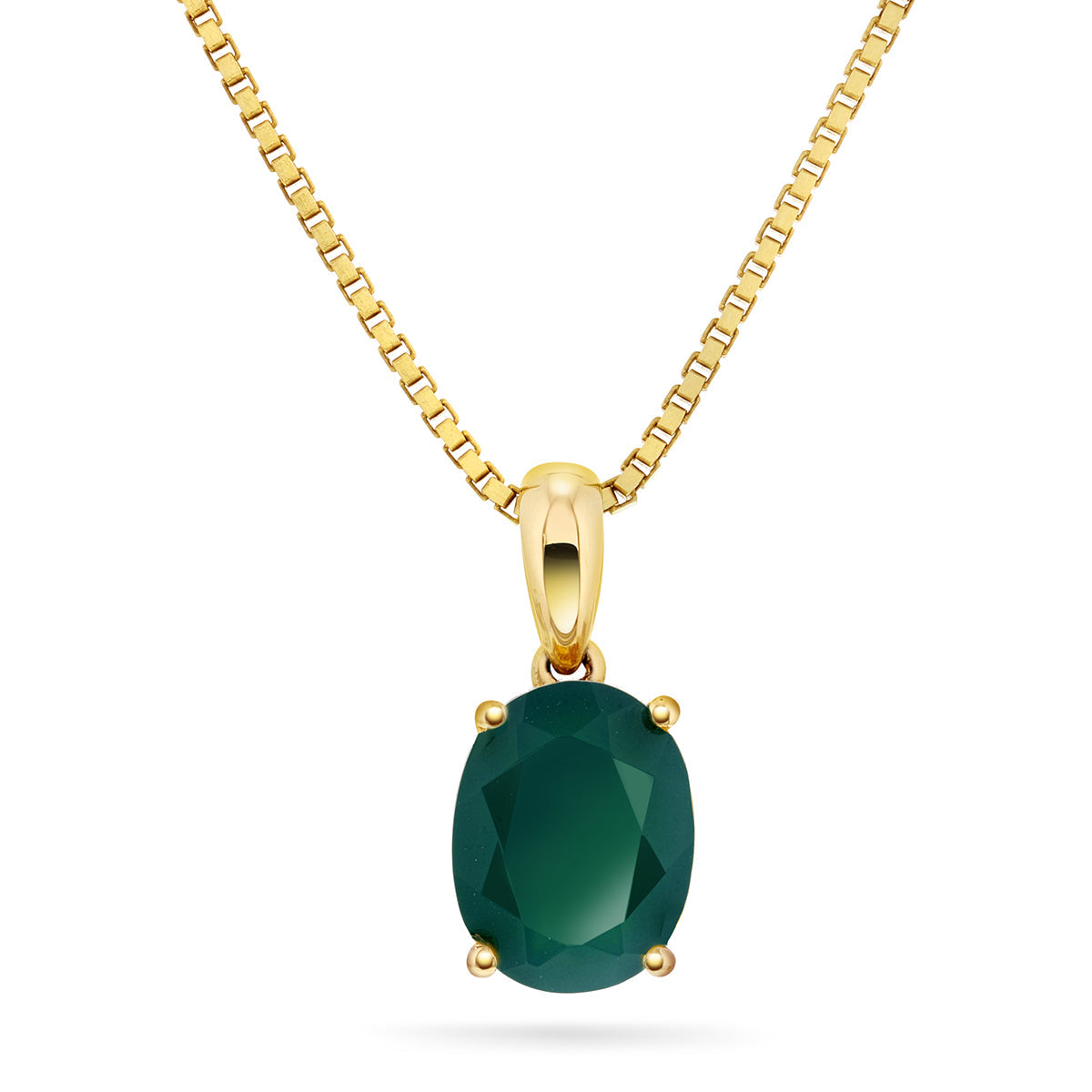 Halssmykke i Gult Gull (585) med 2.50ct Grønn Agat