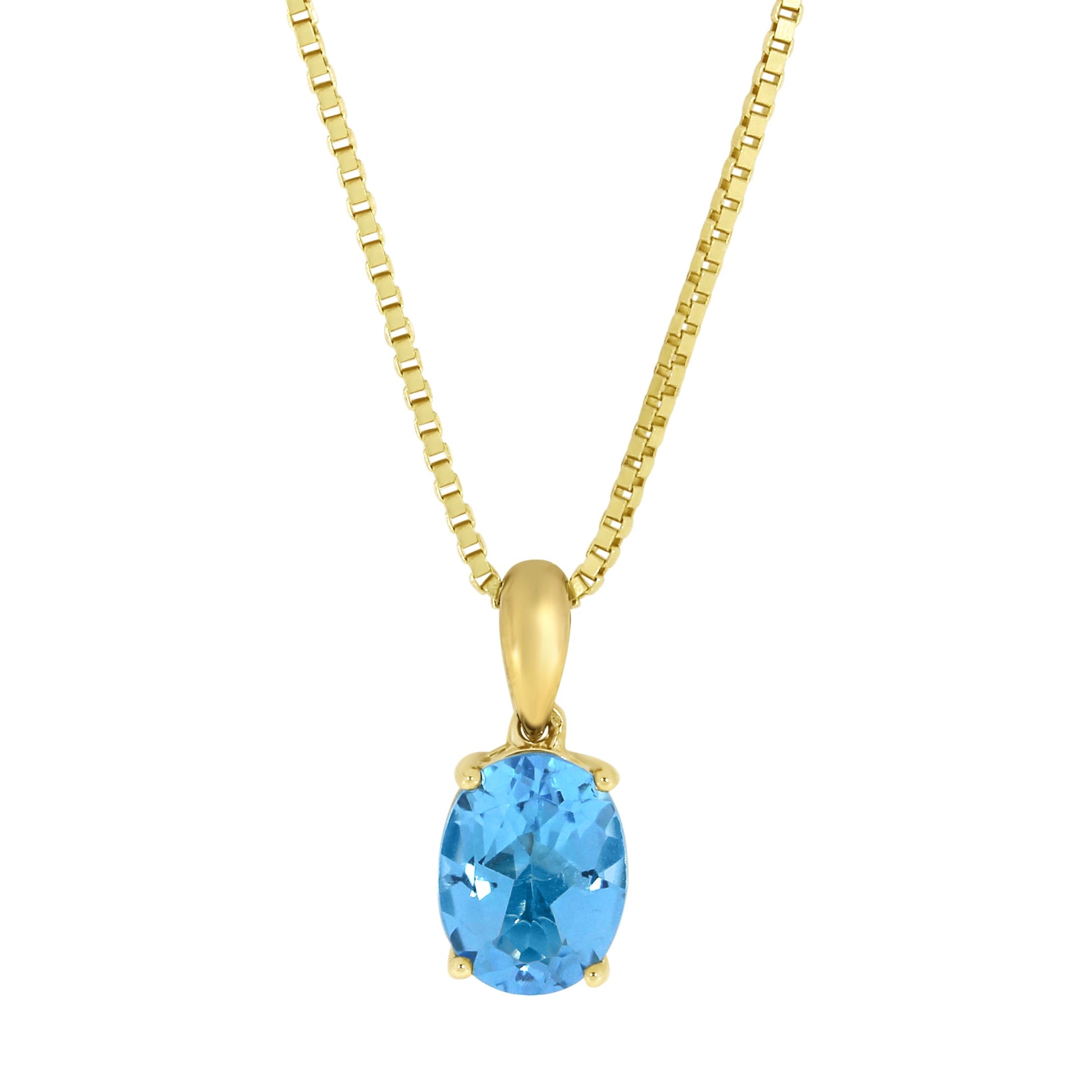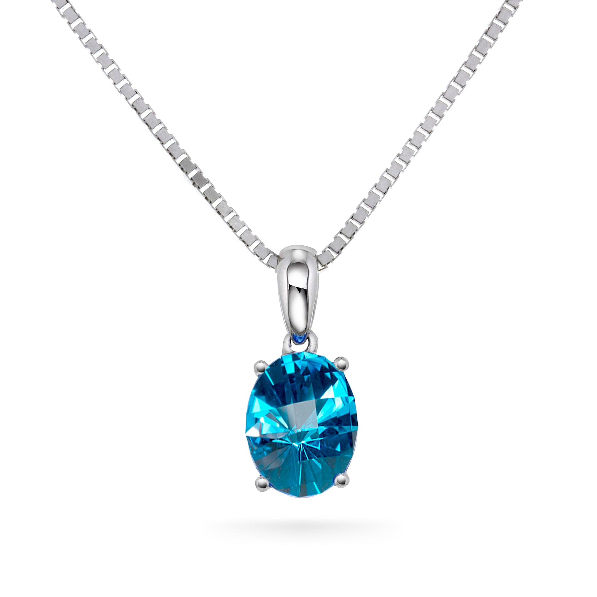 Glitrende halssmykke i 14 karat hvitt eller gult gull med himmelblå topas på 2.50 ct