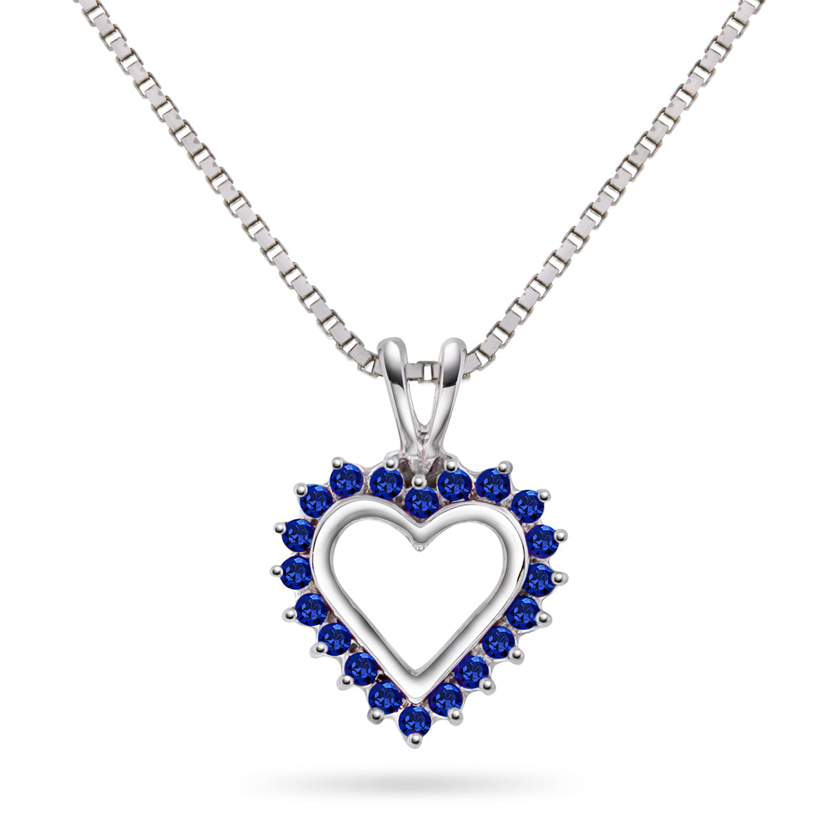 Safirene danner et vakkert hjerte på utsiden av et åpent hjerte i hvitt gull.