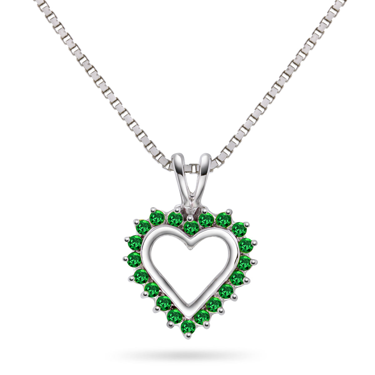 Smaragdene danner et vakkert hjerte på utsiden av et åpent hjerte i hvitt gull.